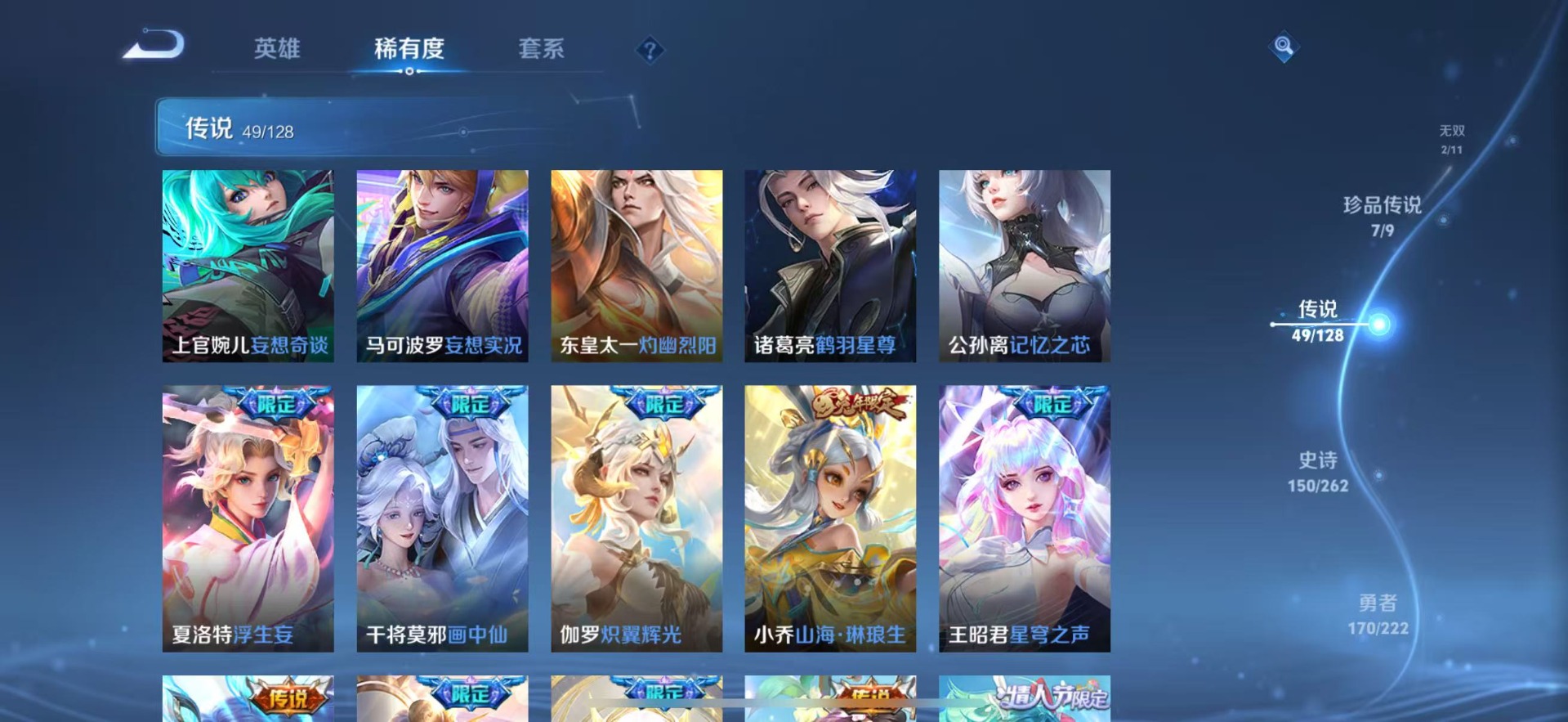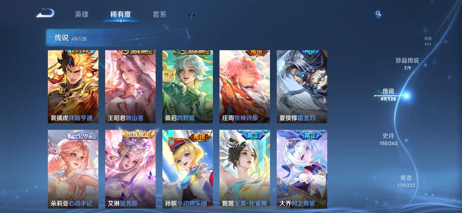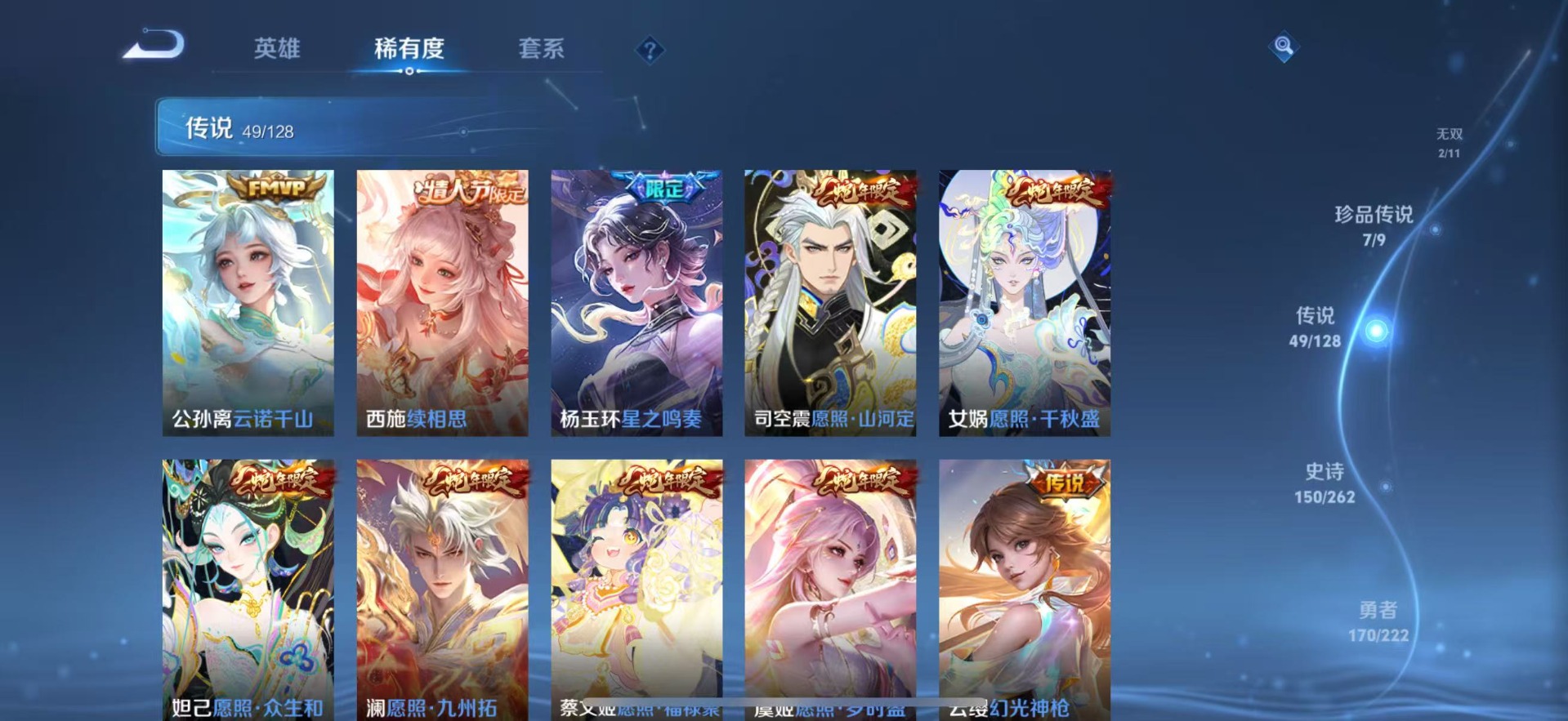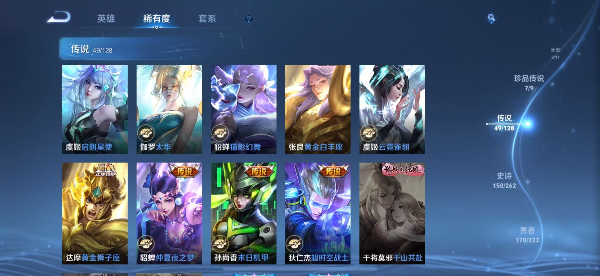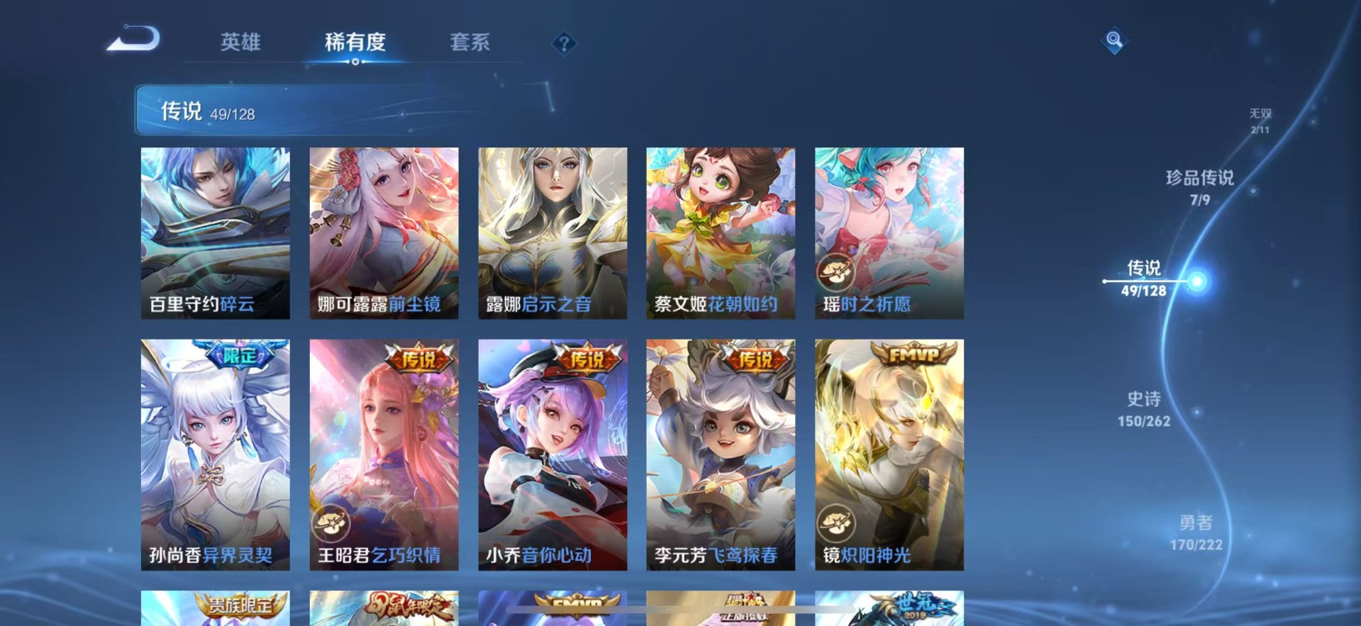 - [11579401]V8 2典藏 23传说 125英雄 231皮肤 典藏英雄武则天 可修改实名 女号 荣耀水晶:鸣剑·曳影,杀手不太冷 传说皮:黄金狮子座,黄金射手座,黄金白羊座,零号·赤焰,地狱火,海洋之心,末日机甲-孙尚香(绿蚂蚱),云霓雀翎,淬星耀世,冠军飞将,久胜战神,猫影幻舞,云鹰飞将(小将军),音你心动-小乔,音你心动-周瑜,胖达荣荣,时之恋人-刘备(电焊工) 珍宝阁皮:优雅恋人 限定皮:太华(伽罗年限),武陵仙君(小桃花),时之彼端,时雨天司(水龙头),神威(电光马子),飞衡(韩信年限),瑞麟志(木兰年限),冰锋战神,梁祝,逐梦之星,祈雪灵祝(雪兔子),李小龙,辉光之辰,如梦令-后羿,霸王别姬-项羽,孙行者,青春决赛季,冰霜恋舞曲,蜜橘之夏,启示之音 史诗皮:石田雨龙,紫霞仙子,苍穹之光,电玩小子(小书包),白龙吟,千年之狐,偶像歌手,晚萤,无限星赏官,魅语,暗夜猫娘,猫狗日记-孙策,时之恋人-孙尚香,乱世虎臣,修罗,水果甜心,天才门将,星夜王子,德古拉伯爵,幽灵船长,鬼剑武藏,舞动绿茵,地狱岩魂,纤云弄巧,繁星吟游(呼啦呼啦),逐浪之夏,曙光守护者,金属风暴,原初追逐者,圣诞狂欢,鹰眼统帅,魅力维加斯,黎明之约,赏金猎手,未来纪元-赵云