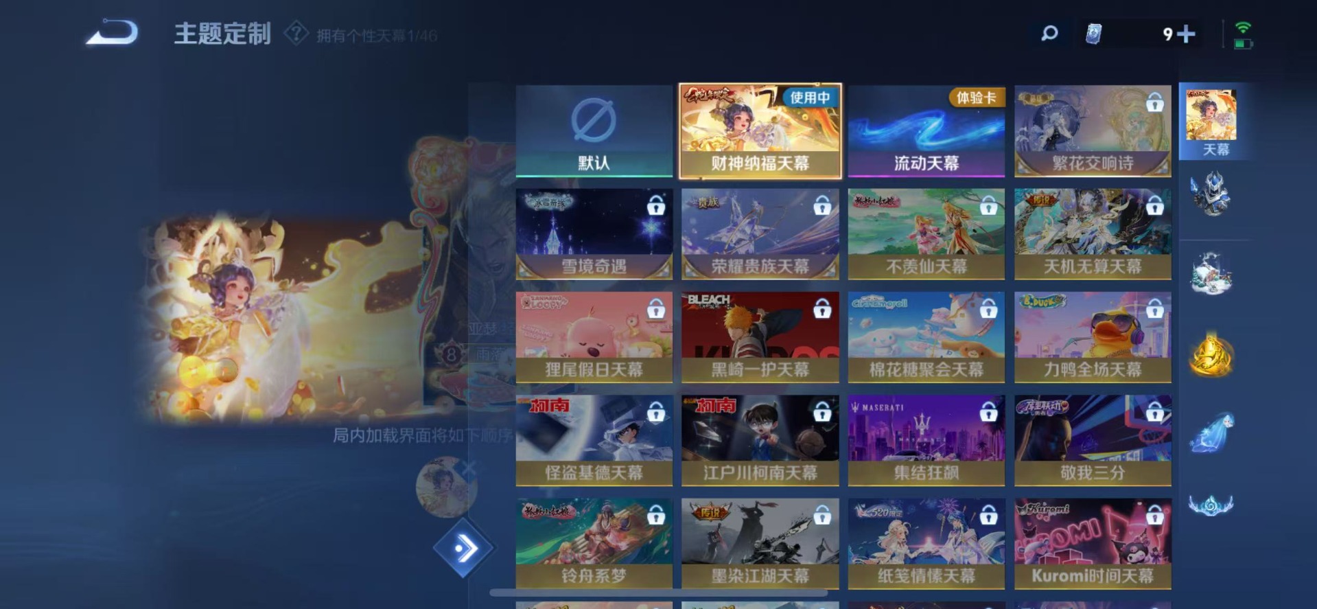不知火舞绯月行,鲁班七号寅虎·瑞焰,后羿如梦令,公孙离祈雪灵祝,司空震愿照·山河定,公孙离蜜橘之夏,裴擒虎李小龙,上官婉儿梁祝,安琪拉魔法小厨娘,桑启鸣野蒿,女娲愿照·千秋盛,孙悟空孙行者,孙悟空大圣娶亲,孙悟空至尊宝,盘古冰霜神祇,妲己愿照·众生和,韩信傲雪梅枪,韩信飞衡,蔡文姬愿照·福禄聚,澜愿照·九州拓,虞姬愿照·岁时盈