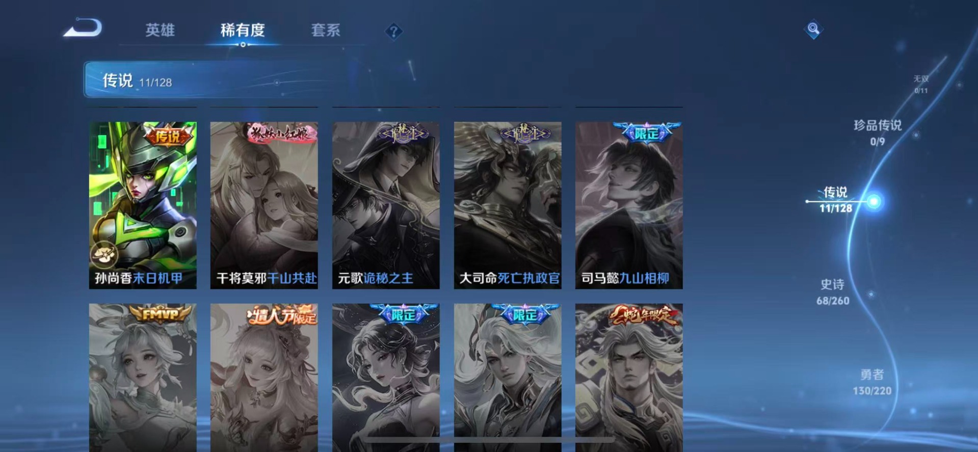 - [11657994]V10 5典藏 3无双 61传说 126英雄 510皮肤 典藏英雄武则天 可修改实名 优质装备:天鹅之梦(小乔典藏),星空梦想(太空人),倪克斯神谕(宇宙婆娘),星域神启(倪克斯贼亮),幻阙歌(貂蝉典藏),神器·明辉仪,碎月剑心(李白无双),小乔时之魔女(小乔无双),黄金狮子座,黄金射手座,冠军飞将,云鹰飞将(小将军),绛天战甲(鸡嘴战神),黄金白羊座,猫影幻舞,久胜战神,炽阳神光,一念神魔,云霓雀翎,末日机甲-孙尚香(绿蚂蚱),地狱火,仲夏夜之梦(大飞蛾),零号·赤焰,海洋之心,地狱之眼,飞鸢探春,胖达荣荣,乞巧织情,时之恋人-刘备(电焊工),游龙清影(小青龙),淬星耀世,超时空战士-狄仁杰,末日机甲-孙策,无双飞将,神器·狴犴令,神器·明辉仪,山海·炽霜斩(李信年限),山海·琳琅生(小乔年限),山海·苍雷引(电光曜子),燃星之曲,记忆之芯(机甲兔),灼幽烈阳,鲁班七号-时之奇旅,永恒水手月亮,夜礼服假面,霜月吟,澜逐花归海,艾琳觅芳踪,琥珀纪元铠,琥珀纪元马超,涂山容容 传说皮:乘龙·问璇玑(孙尚香年限),乘龙·铭钟鼎(赵云年限),乘龙·淬吴钩(孙策年限),貂蝉曦玄引,吕布曦玄引,落雪白狼 珍宝阁皮:妄想食味,优雅恋人,女武神 限定皮:逐霄战戟,鸣野蒿,至尊宝,白虎志(电光耗子),凤求凰(白切鸡),凤凰于飞,太华(伽罗年限),武陵仙君(小桃花),傲雪梅枪,寅虎·展翼(孙膑年限),时之彼端,魔法小厨娘,白晶晶,时雨天司(水龙头),神威(电光马子),飞衡(韩信年限),玄嵩(庄周年限),山海·碧波行(瑶年限),无限倾心-项羽,至美·乘鲤谣,遇见飞天,无限倾心-虞姬,齐天大圣,匿光决锋者,五谷丰年,青龙志(铠年限),冰锋战神,幽恒(沐浴露),天狼运算者,游园惊梦,梁祝,天狼狩猎者,逐梦之星,烈魂,岱宗(典韦年限),天狼溯光者,天狼征服者,奔雷神使(牛魔年限),天狼绘梦者,李小龙,朱雀志(守约年限),永曜之星,辉光之辰,如梦令-嫦娥,如梦令-后羿,霸王别姬-虞姬,奇迹圣诞,默契交锋-兰陵王,默契交锋-花木兰,孙行者,猪悟能,一生所爱,大圣娶亲,冰霜恋舞曲,云端筑梦师,乒乒小将,蜜橘之夏,热情桑巴,美猴王,匿光追影者,女儿国国王,寅虎·御盾(廉颇年限),寅虎·瑞焰(虎皮蛋子),寅虎·心曲(虎婆),寅虎·赤拳(老虎年限),玉兔公主,唐三藏,匿光启智者,时之奇旅-妲己,神器
