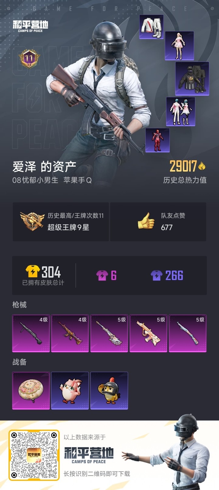 - PX_2078015-时装数: 55 枪械数: 79 战备数: 57 稀有枪皮: Kar98K-巳巳如意