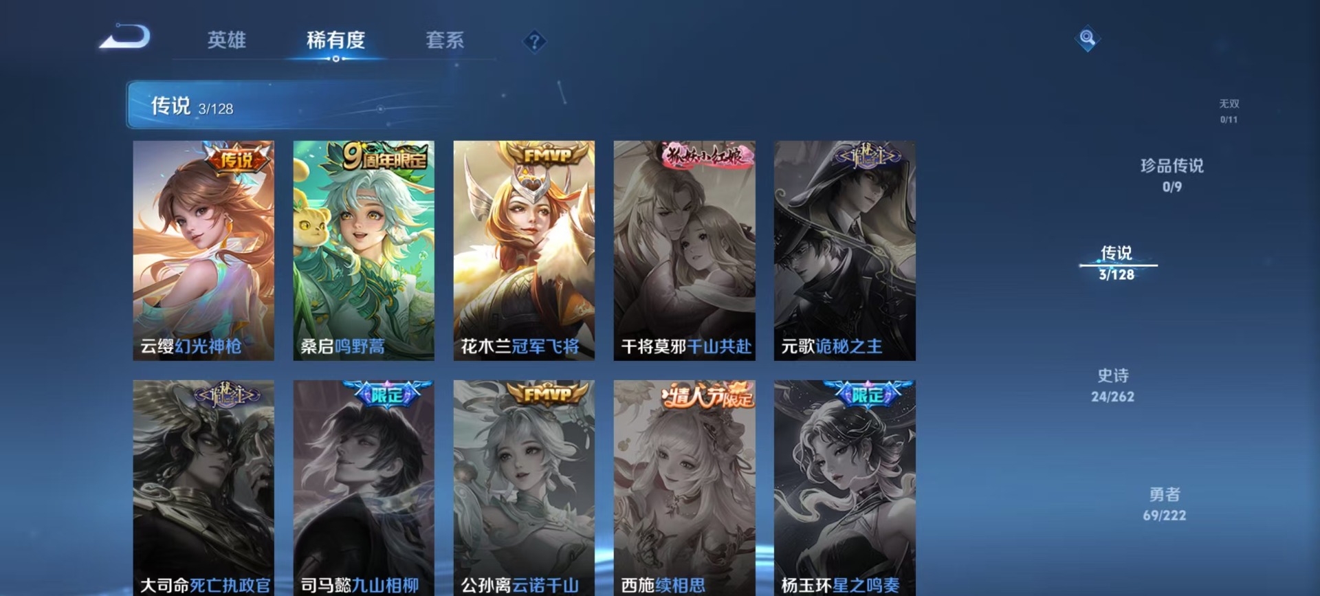 - [11608228]V10 11典藏 2无双 2珍品传说 53传说 126英雄 494皮肤 典藏英雄武则天 可修改实名 优质装备:天鹅之梦(小乔典藏),倪克斯神谕(宇宙婆娘),无限飓风号(高达),活力突击,杀手不太冷,鸣剑·曳影,全息碎影(猴子典藏),星域神启(倪克斯贼亮),九霄神辉(木兰典藏),幻阙歌(貂蝉典藏),青丘·九尾(妲己无双),碎月剑心(李白无双),拾光映像(瑶典藏),器灵·落星盏,酷洛米之心,黄金狮子座,黄金射手座,云鹰飞将(小将军),绛天战甲(鸡嘴战神),猫影幻舞,久胜战神,炽阳神光,一念神魔,末日机甲-孙尚香(绿蚂蚱),地狱火,仲夏夜之梦(大飞蛾),零号·赤焰,地狱之眼,音你心动-周瑜,胖达荣荣,乞巧织情,时之恋人-刘备(电焊工),游龙清影(小青龙),淬星耀世,超时空战士-狄仁杰,末日机甲-孙策,无双飞将,音你闪耀(rap皮),碎云,山海·琳琅生(小乔年限),画中仙,浮生妄,记忆之芯(机甲兔),青丘·九尾,惊梅引,小动物乐团,霜月吟,艾琳觅芳踪,琥珀纪元马超 传说皮:续相思,幻光神枪 珍宝阁皮:妄想食味,万物之道,女武神,玩趣恶龙 限定皮:愿照·福禄聚(蔡文姬年限),愿照·众生和(妲己年限),逐霄战戟,陌上桑,鸣野蒿,至尊宝,白虎志(电光耗子),凤求凰(白切鸡),凤凰于飞,太华(伽罗年限),异界灵契(白毛香),时之彼端,白鹤梁神女,魔法小厨娘,白晶晶,时雨天司(水龙头),神威(电光马子),无限倾心-项羽,瑞麟志(木兰年限),至美·乘鲤谣,至美·化雀舞,高山流水,诗剑行,无限倾心-虞姬,齐天大圣,怒海麟威,五谷丰年,青龙志(铠年限),冰锋战神,天狼运算者,游园惊梦,梁祝,岱宗(典韦年限),天狼溯光者,天狼绘梦者,李小龙,逐梦之影,逐梦之光,朱雀志(守约年限),辉光之辰,如梦令-嫦娥,默契交锋-兰陵王,默契交锋-花木兰,孙行者,猪悟能,一生所爱,大圣娶亲,引擎之心,冰霜恋舞曲,蜜橘之夏,热情桑巴,美猴王,匿光追影者,女儿国国王,百木心枪,启示之音,枫霜尽,匿光启智者,神器·万象笔,梦圆繁星,山海·玄木吟(马可年限) 史诗皮:器灵·浮梦炉,化蝶舞,灵蛊蚀心,星界战将,龙之律动,石田雨龙,幻珠鲛人,炽弈燎原,破空之剑,涂山红红,蒙犽顽岩魄,琥珀纪元伽罗,上官婉儿群星魔术团,蔬乡物语(鲁班七号),乘龙·聚宝船(安琪拉年限),乘龙·忆丹青(大乔年限),百相守梦-黄忠,织梦人