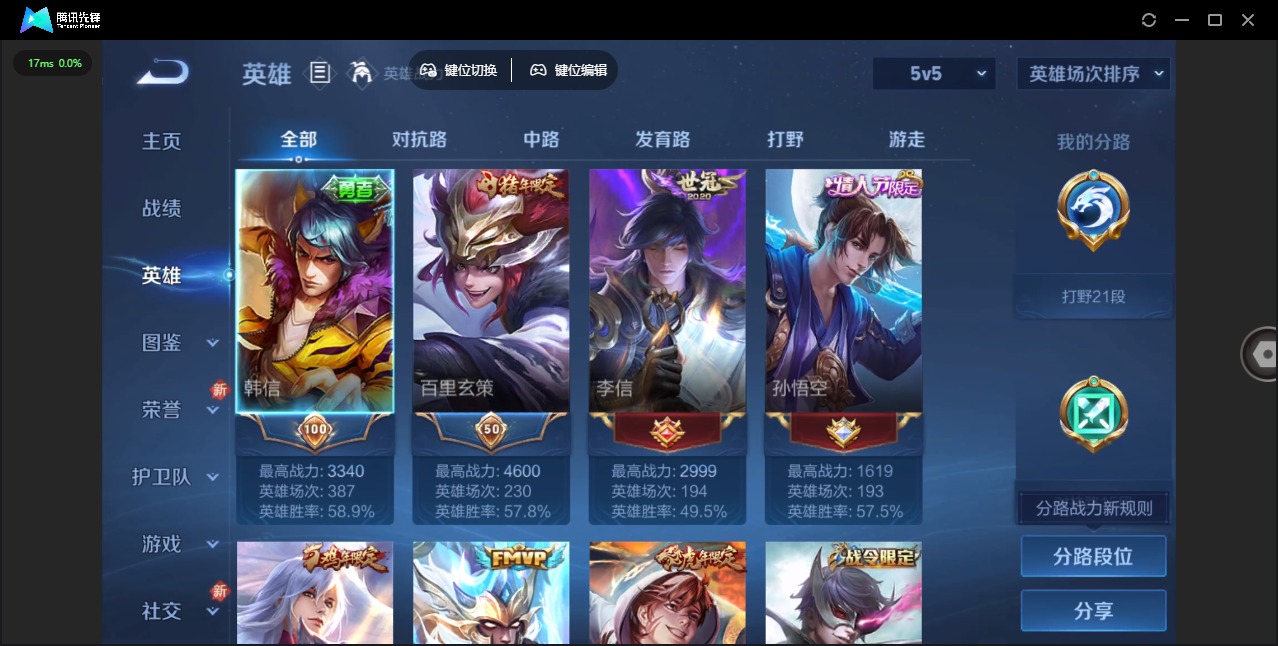 - [11341146]V6 2传说 120英雄 154皮肤 可修改实名 珍宝阁皮:妄想食味,女武神 限定皮:鸣野蒿,傲雪梅枪,绯月行,降魔,御风骁将(吕布年限),逐梦之影,乒乒小将,山海·玄木吟(马可年限) 史诗皮:特工魅影,百解令(蒙犽),龙骑士(小龙虾),末日机甲-吕布,乱世虎臣,节奏热浪,摇滚巨星,水果甜心,暗隐猎兽者,心灵战警,纤云弄巧,逐浪之夏,水晶猎龙者,曙光守护者,热力回旋,金属风暴,原初追逐者,鹰眼统帅,魅力维加斯,无心,未来纪元-赵云