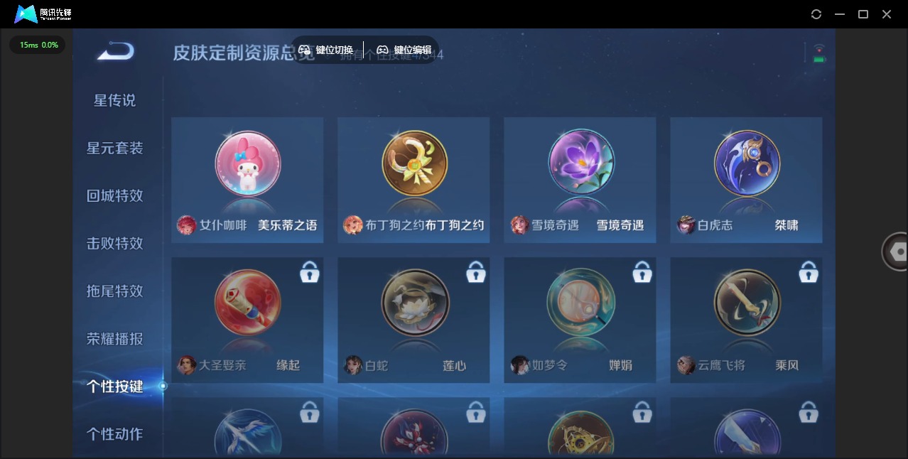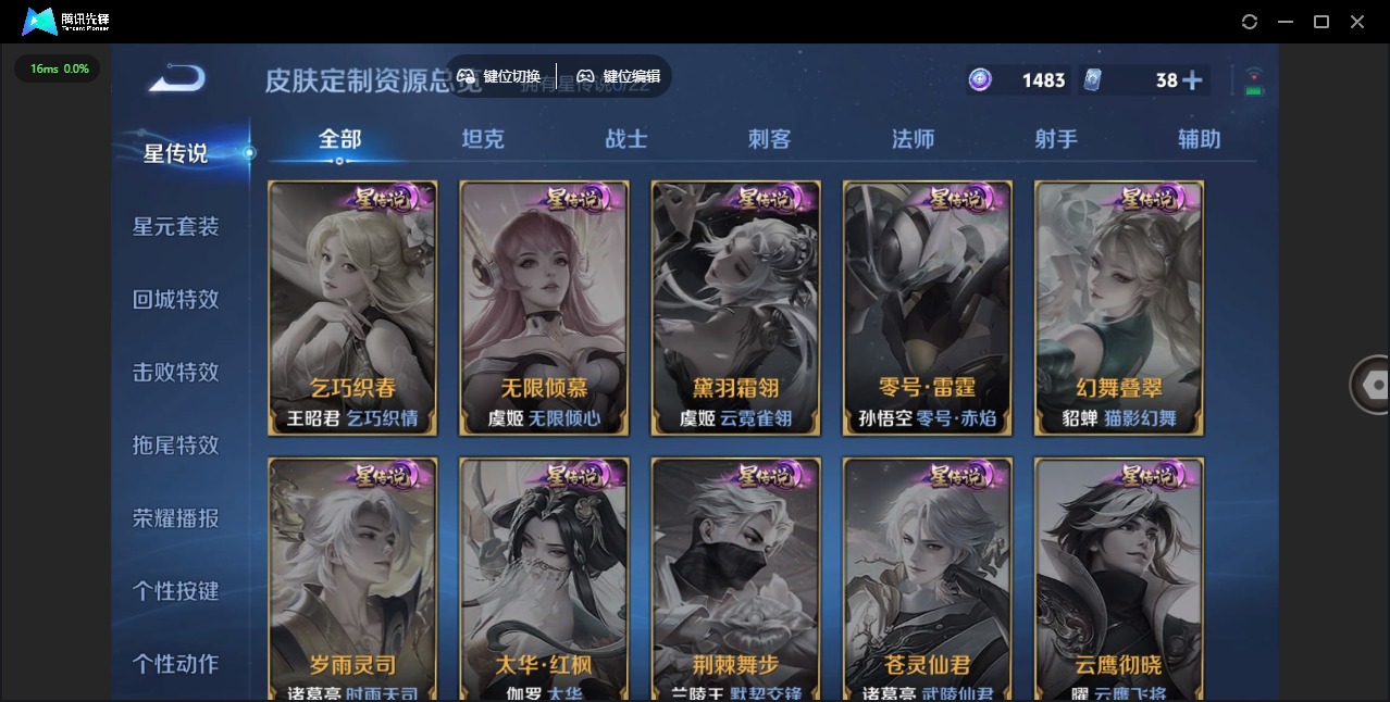 铠青龙志,曹操天狼征服者,苏烈玄武志,典韦岱宗,后羿如梦令,公孙离蜜橘之夏,裴擒虎天狼狩猎者,裴擒虎寅虎·赤拳,东皇太一逐梦之光,上官婉儿梁祝,花木兰青春决赛季,桑启鸣野蒿,猪八戒猪悟能,孙悟空孙行者,孙悟空至尊宝,百里玄策白虎志,马超神威,韩信傲雪梅枪,韩信飞衡,百里守约朱雀志