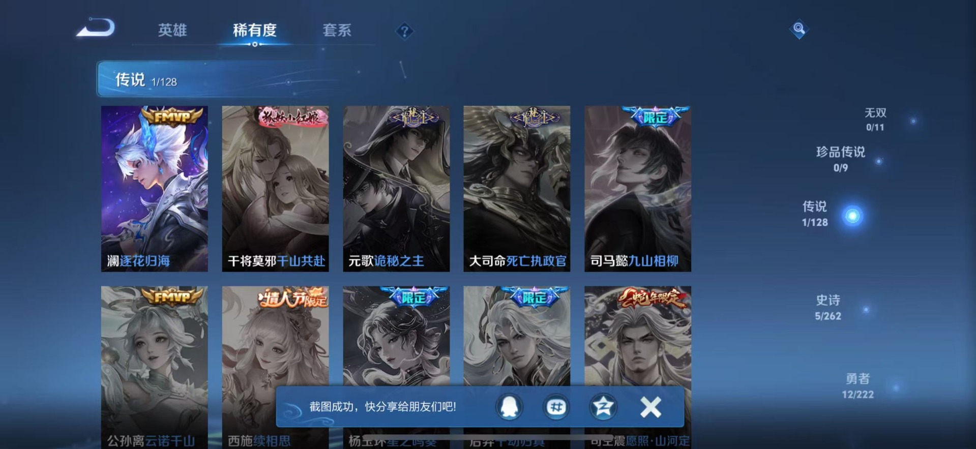 - PX_2097861-低价清仓处理秒换绑 Z1451 安卓q-V8-印记9 星传金色仲夏夜 261皮肤 10传说 -1水晶(已兑换) 大秦宣太后 鸣野蒿 冰封战神 启明星使 时雨天司 御风骁将 山海碧波行 飞衡 齐天大圣 逐梦之星 天狼征服者 大圣娶亲 一生所爱 白晶晶 冰霜恋舞曲 猪悟能 猎兽之王 神迹守卫钟馗 狮舞东方 星空之诺 银河之约 音你心动男 暗影游猎 诗剑行 黎明之约 梁祝 狂想玩偶