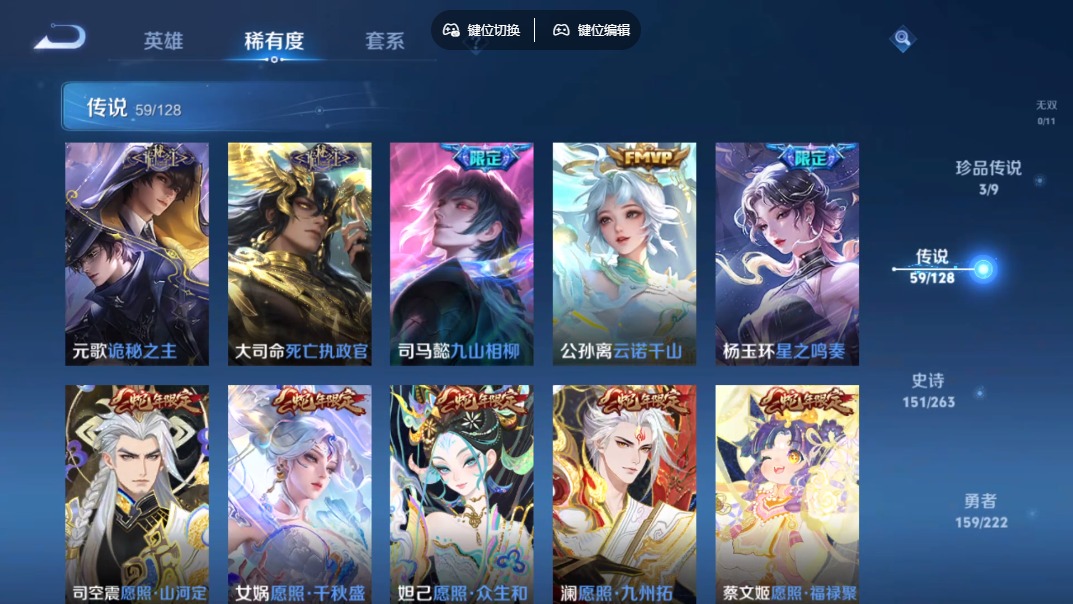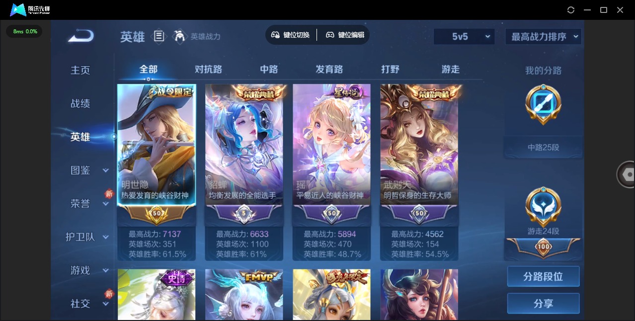 - [12113073]V8 1典藏 1无双 24传说 125英雄 224皮肤 可修改实名 优质装备:鸣剑·曳影,器灵·螭龙剑,黄金射手座,冠军飞将,云鹰飞将(小将军),一念神魔,仲夏夜之梦(大飞蛾),零号·赤焰,地狱之眼,时之恋人-刘备(电焊工),淬星耀世,末日机甲-孙策,霜月吟,澜逐花归海,云中君群星魔术团,涂山容容 传说皮:典韦战鼓燎原,死亡执政官,祥瑞亨通 珍宝阁皮:妄想食味,胡桃夹子,女武神 限定皮:愿照·九州拓(澜年限),逐霄战戟,鸣野蒿,至尊宝,补天,高山流水,诗剑行,怒海麟威,五谷丰年,游园惊梦,梁祝,李小龙,孙行者,无尽星芒,枫霜尽 史诗皮:赞萌露比,鸭鸭历险记-刘禅,瑰影绮梦,化蝶舞,谪仙醉月,龙之律动,破空之剑,蔬乡物语(鲁班七号),星界特工,织梦人,紫霞仙子,电玩小子(小书包),白龙吟,黄金分割率,特工魅影,千年之狐,江河有灵,魅语,百解令(蒙犽),冰冠公主,偶像歌手,末日机甲-吕布,女仆咖啡,摇滚巨星,水果甜心,心灵骇客,时之奇旅-安琪拉,功夫厨神,德古拉伯爵,暗隐猎兽者,幽灵船长,鬼剑武藏,地狱岩魂,纤云弄巧,繁星吟游(呼啦呼啦),拒霜思,乘风破浪,水晶猎龙者,曙光守护者,金属风暴,原初追逐者,圣诞狂欢,鹰眼统帅,魅力维加斯,赏金猎手,无心,未来纪元-赵云
