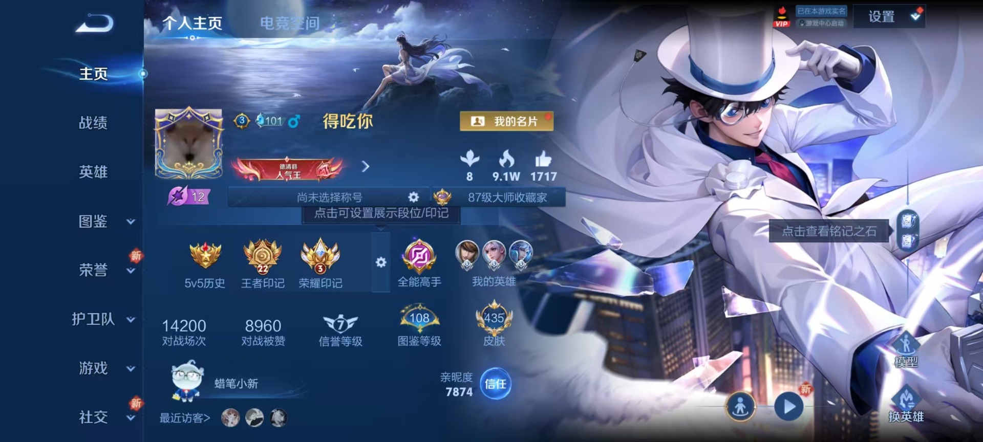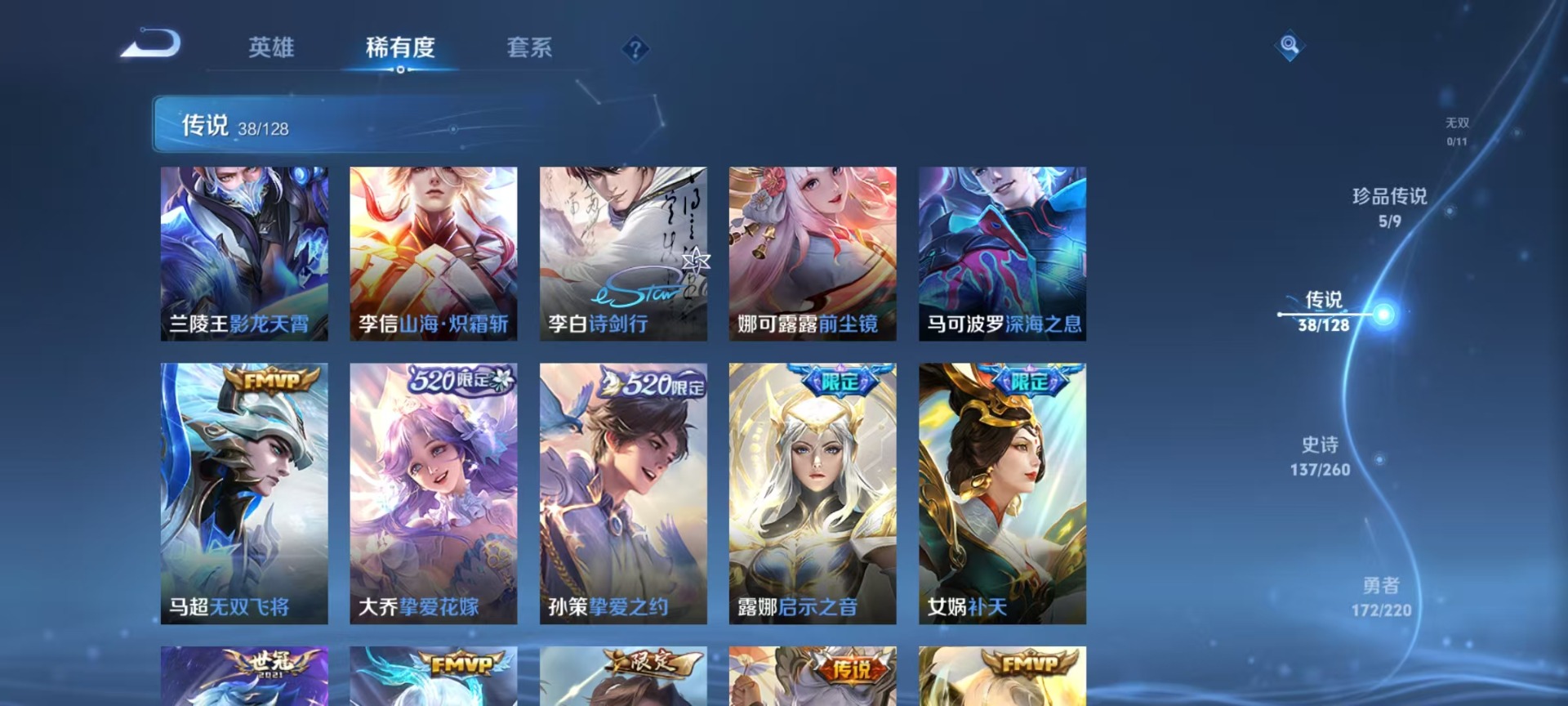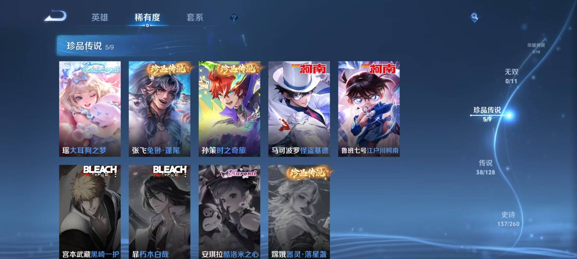[12174687]V10 3典藏 5珍品传说 38传说 125英雄 435皮肤 可修改实名 优质装备:鸣剑·曳影,幻阙歌(貂蝉典藏),弑枪猎影(韩信典藏),江户川柯南,怪盗基德,大耳狗之梦,黄金狮子座,云鹰飞将(小将军),炽阳神光,一念神魔,末日机甲-孙尚香(绿蚂蚱),地狱火,仲夏夜之梦(大飞蛾),地狱之眼,飞鸢探春,李逍遥,时之恋人-刘备(电焊工),游龙清影(小青龙),淬星耀世,超时空战士-狄仁杰,挚爱之约,挚爱花嫁,无双飞将,山海·炽霜斩(李信年限),澜逐花归海,艾琳觅芳踪,诡秘之主,涂山容容 珍品传说:时之奇旅-孙策,兔狲·蓬尾 传说皮:乘龙·铭钟鼎(赵云年限),死亡执政官,幻光神枪 珍宝阁皮:妄想食味,万物之道,优雅恋人,女武神 限定皮:愿照·九州拓(澜年限),愿照·山河定(司空震年限),愿照·众生和(妲己年限),逐霄战戟,鸣野蒿,至尊宝,白虎志(电光耗子),武陵仙君(小桃花),傲雪梅枪,补天,前尘镜,白鹤梁神女,影龙天霄,高山流水,诗剑行,匿光决锋者,五谷丰年,青龙志(铠年限),游园惊梦,梁祝,御风骁将(吕布年限),天狼狩猎者,龙胆,烈魂,天狼溯光者,天狼征服者,天狼绘梦者,李小龙,逐梦之影,朱雀志(守约年限),霸王别姬-项羽,霸王别姬-虞姬,默契交锋-花木兰,猪悟能,天魔缭乱,冰霜恋舞曲,乒乒小将,蜜橘之夏,百木心枪,玉兔公主,启示之音,深海之息(深海大菠萝),山海·玄木吟(马可年限) 史诗皮:鸭鸭历险记-刘禅,器灵·浮梦炉,化蝶舞,灵蛊蚀心,星界战将,龙之律动,雪豹·霜爪,藏狐·褐绒,石田雨龙,怒海争锋,破空之剑,东方月初,芈月浮光幕影,蔬乡物语(鲁班七号),百相守梦-百里守约,百相守梦-黄忠,织梦人,紫霞仙子,白龙吟,黄金分割率,特工魅影,千年之狐,永昼,江河有灵,鹤归松栖(赵怀真),魅语,蒙恬荣光圣徽,冰冠公主,青蛇,偶像歌手,晚萤,电玩·爆裂旋风,龙骑士(小龙虾),末日机甲-吕布,猫狗日记-孙策,猫狗日记-大乔,时之恋人-孙尚香,乱世虎臣,节奏热浪,修罗,女仆咖啡,摇滚巨星,水果甜心,绅士熊喵,天才门将,星夜王子,心灵骇客,功夫厨神,德古拉伯爵,暗隐猎兽者,幽灵船长,鬼剑武藏,暗渊魔法,心灵战警,天秀·启明,舞动绿茵,地狱岩魂,纤云弄巧,繁星吟游(呼啦呼啦),拒霜思,缤纷独角兽,乘风破浪,逐浪之夏,龙鼓争鸣,月团寄思,水晶猎龙者,曙光守护者,箭羽风息,唤灵魅影,