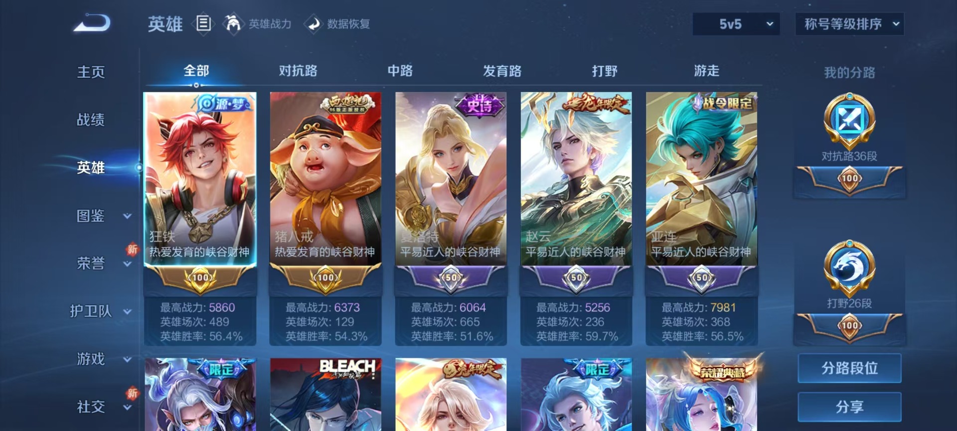 - PX_2095067-实名: 可修改 贵族等级: V7 英雄数: 124 皮肤数: 114 传说皮: 冠军飞将,黄金白羊座,猫影幻舞,超时空战士-狄仁杰,山海·苍雷引,乘龙·淬吴钩 限定皮: 御风骁将,龙胆,烈魂,孙行者,五谷丰年,神器·万象笔,山海·玄木吟