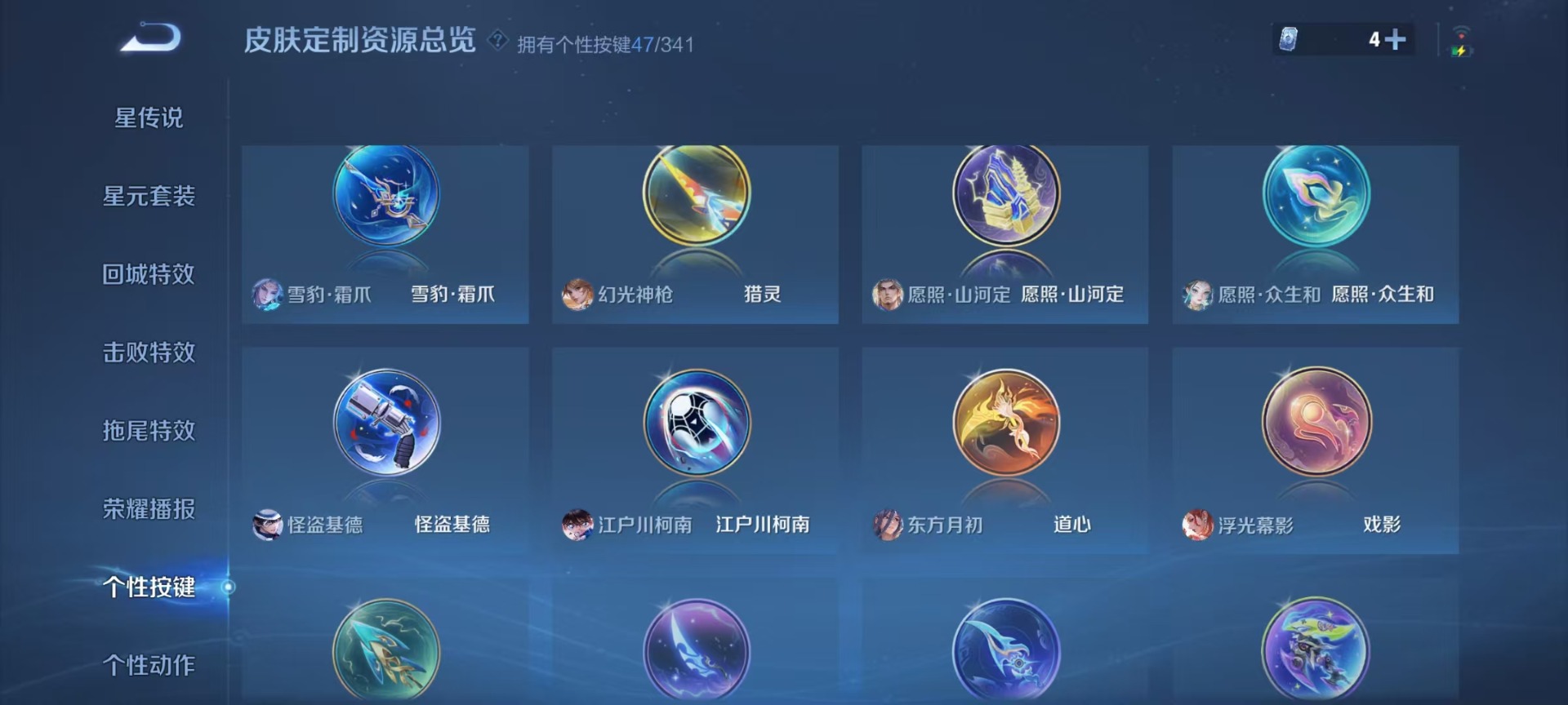 大乔白鹤梁神女,夏侯惇匿光决锋者,黄忠烈魂,铠青龙志,曹操天狼征服者,伽罗天狼溯光者,赵云百木心枪,赵云龙胆,干将莫邪冰霜恋舞曲,鲁班七号乒乒小将,项羽霸王别姬,吕布御风骁将,露娜启示之音,公孙离玉兔公主,司空震愿照·山河定,兰陵王影龙天霄,公孙离蜜橘之夏,裴擒虎李小龙,裴擒虎天狼狩猎者,上官婉儿梁祝,上官婉儿天狼绘梦者,李白诗剑行,花木兰默契交锋,马可波罗山海·玄木吟,马可波罗深海之息,桑启鸣野蒿,猪八戒猪悟能,女娲补天,孙悟空至尊宝,百里玄策白虎志,妲己愿照·众生和,韩信傲雪梅枪,韩信逐梦之影,百里守约朱雀志,澜愿照·九州拓,虞姬霸王别姬,娜可露露前尘镜