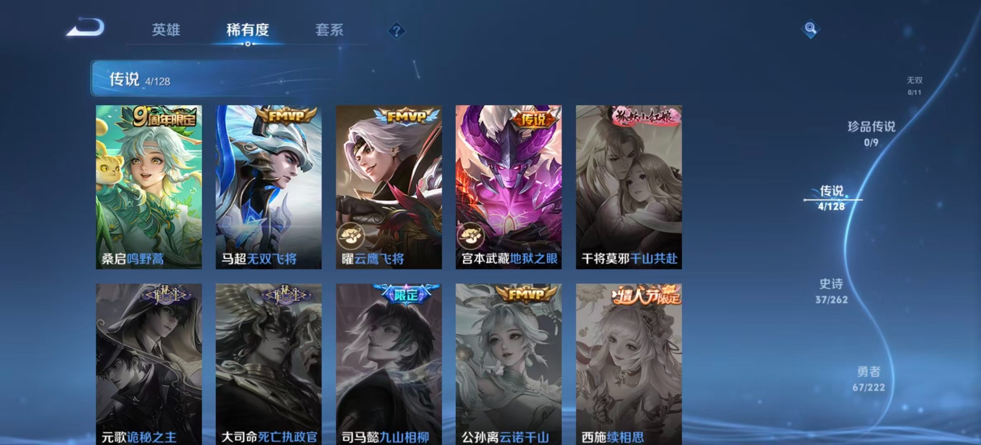 - PX_2071339-安卓QQ 318皮 贵族9级 2典藏 1珍品传说 1无双 47传说 87史诗【荣耀典藏】无限飓风号,神鉴启示录【珍品传说】朽木白哉【无双限定】器灵·螭龙剑【传说皮肤】妄想奇谈,绯月行,幻光神枪,落雪白狼,太华,记忆之芯,祈雪灵祝,影龙天霄,武圣,时之恋人,愿照·山河定,黄金射手座,浮生妄,愿照·千秋盛,愿照·众生和,玄雷天君,异界灵契,乘龙·问璇玑,零号·赤焰,齐天大圣,乘龙