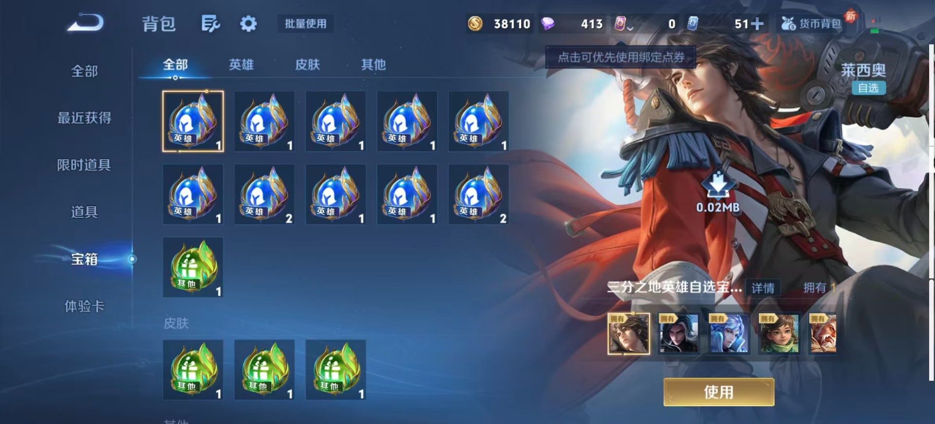 - [11608695]V10 2典藏 2无双 51传说 123英雄 447皮肤 可修改实名 优质装备:鸣剑·曳影,弑枪猎影(韩信典藏),碎月剑心(李白无双),小乔时之魔女(小乔无双),黄金狮子座,黄金射手座,云鹰飞将(小将军),黄金白羊座,炽阳神光,一念神魔,云霓雀翎,末日机甲-孙尚香(绿蚂蚱),零号·赤焰,地狱之眼,音你心动-周瑜,李逍遥,乞巧织情,时之恋人-刘备(电焊工),游龙清影(小青龙),淬星耀世,超时空战士-狄仁杰,末日机甲-孙策,无双飞将,山海·炽霜斩(李信年限),山海·苍雷引(电光曜子),记忆之芯(机甲兔),百相守梦(张飞),鹤羽星尊,灼幽烈阳,妄想实况,妄想奇谈,鹤归松栖(云缨),遇见神鼓,鲁班七号-时之奇旅,大乔-时之奇旅,永恒水手月亮,夜礼服假面,澜逐花归海,艾琳觅芳踪,琥珀纪元铠,琥珀纪元马超,金乌负日 传说皮:落雪白狼 珍宝阁皮:优雅恋人,玩趣恶龙 限定皮:鸣野蒿,至尊宝,白虎志(电光耗子),异界灵契(白毛香),傲雪梅枪,白晶晶,时雨天司(水龙头),神威(电光马子),无限倾心-项羽,瑞麟志(木兰年限),至美·乘鲤谣,影龙天霄,无限倾心-虞姬,匿光决锋者,五谷丰年,青龙志(铠年限),冰锋战神,幽恒(沐浴露),武圣,天狼运算者,游园惊梦,御风骁将(吕布年限),天狼狩猎者,龙胆,烈魂,岱宗(典韦年限),天狼溯光者,虎魄,奔雷神使(牛魔年限),祈雪灵祝(雪兔子),天狼绘梦者,李小龙,逐梦之影,逐梦之光,玄武志(苏烈年限),朱雀志(守约年限),辉光之辰,如梦令-后羿,霸王别姬-项羽,圣诞老人,奇迹圣诞,孙行者,一生所爱,引擎之心,青春决赛季,冰霜恋舞曲,云端筑梦师,蜜橘之夏,美猴王,匿光追影者,女儿国国王,时之祈愿-云中君,百木心枪,玉兔公主,启示之音,枫霜尽,匿光启智者,时之奇旅-妲己,神器·万象笔,山海·玄木吟(马可年限) 史诗皮:星界战将,怒海争锋,炽弈燎原,东方月初,埋骨钱,琥珀纪元伽罗,奇遇星旅,蔬乡物语(鲁班七号),遇见神鹿,紫霞仙子,苍穹之光,电玩小子(小书包),白龙吟,黄金分割率,特工魅影,千年之狐,永昼,江河有灵,匿光侦查者,末日机甲-莱西奥,鹤归松栖(赵怀真),雪夜绮愿(周瑜),真我赫兹(镜),真我赫兹(百里守约),完美假期,魅语,百解令(蒙犽),高渐离燃音魔法,蒙恬荣光圣徽,无限星赏官,匿光破解者,冰冠公主,青蛇,偶像歌手,白蛇,晚萤,电玩·爆裂旋