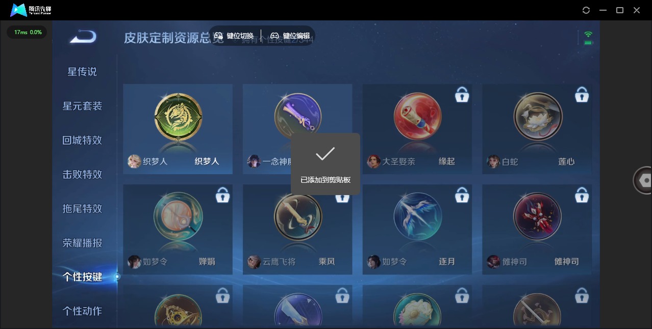铠绛天战甲,赵云淬星耀世,小乔音你心动,李信一念神魔,镜炽阳神光,亚连落雪白狼,孙悟空零号·赤焰,曜云鹰飞将,曜李逍遥,虞姬云霓雀翎
