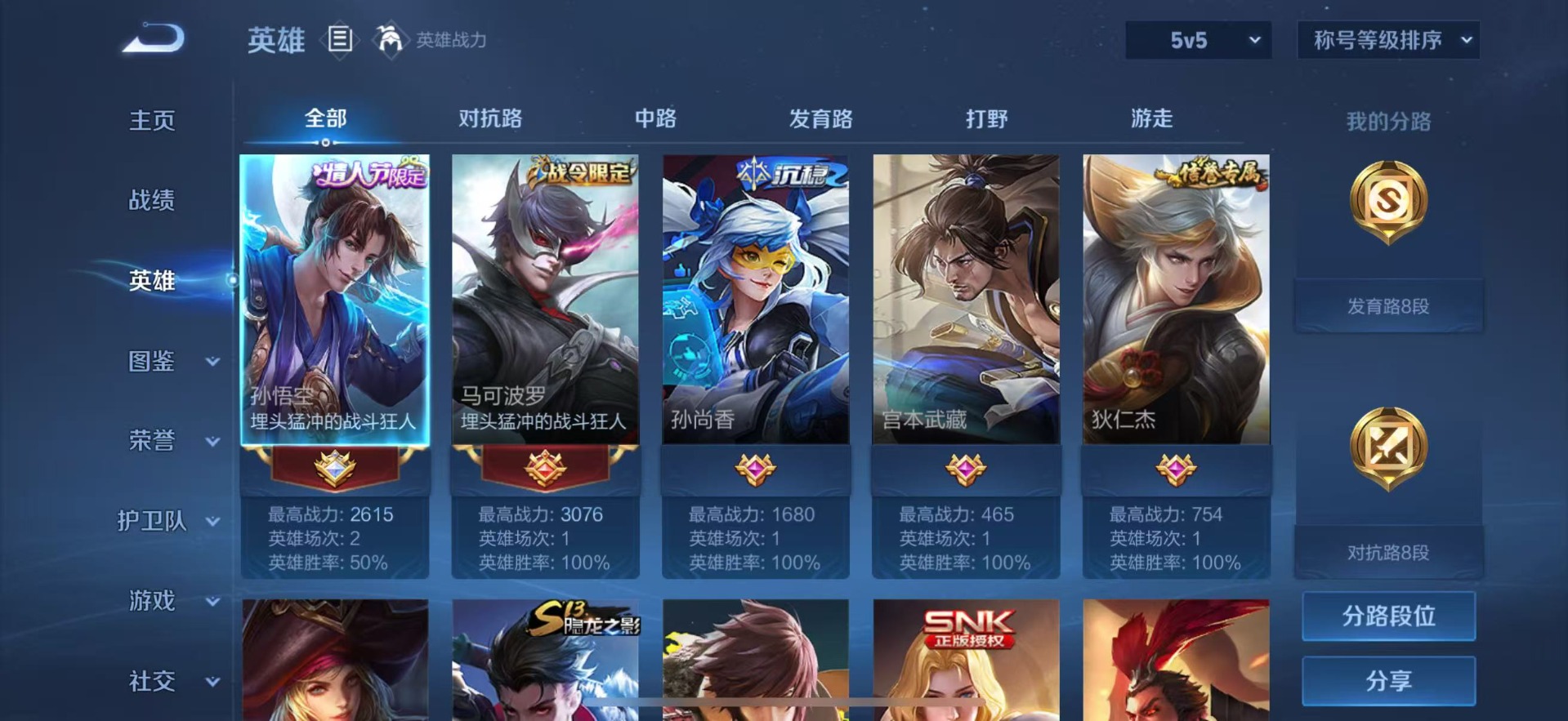 [12175459]V5 123英雄 152皮肤 可修改实名 珍宝阁皮:优雅恋人,蔷薇恋人 限定皮:至尊宝,五谷丰年,游园惊梦,梁祝,李小龙 史诗皮:百相守梦-黄忠,特工魅影,雪夜绮愿(周瑜),猫狗日记-孙策,节奏热浪,女仆咖啡,摇滚巨星,水果甜心,星夜王子,幽灵船长,繁星吟游(呼啦呼啦),拒霜思,鹰眼统帅,未来纪元-赵云