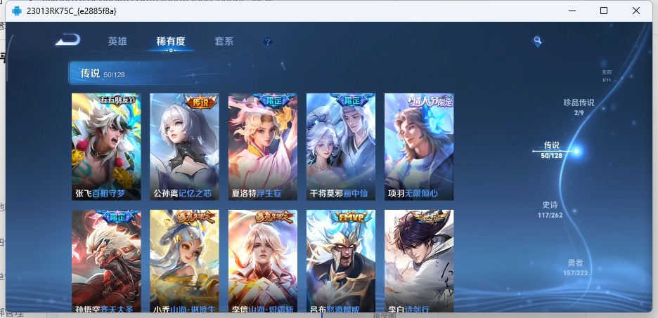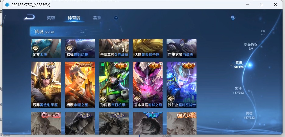 - [11527724]V7 8传说 124英雄 149皮肤 可修改实名 优质装备:冠军飞将,炽阳神光,一念神魔,胖达荣荣,乞巧织情,山海·炽霜斩(李信年限) 珍宝阁皮:胡桃夹子 限定皮:愿照·岁时盈(虞姬年限),鸣野蒿,至尊宝,五谷丰年,李小龙,神器·万象笔,山海·玄木吟(马可年限) 史诗皮:电玩小子(小书包),黄金分割率,江河有灵,无限星赏官,冰冠公主,偶像歌手,百相守梦(刘备),时之恋人-孙尚香,节奏热浪,修罗,女仆咖啡,水果甜心,星夜王子,心灵骇客,功夫厨神,暗隐猎兽者,鬼剑武藏,暗渊魔法,纤云弄巧,缤纷独角兽,水晶猎龙者,曙光守护者,热力回旋,箭羽风息,金属风暴,鹰眼统帅,暗夜贵公子,魅力维加斯,赏金猎手,天秀·音浪,无心,未来纪元-赵云,玫瑰异探
