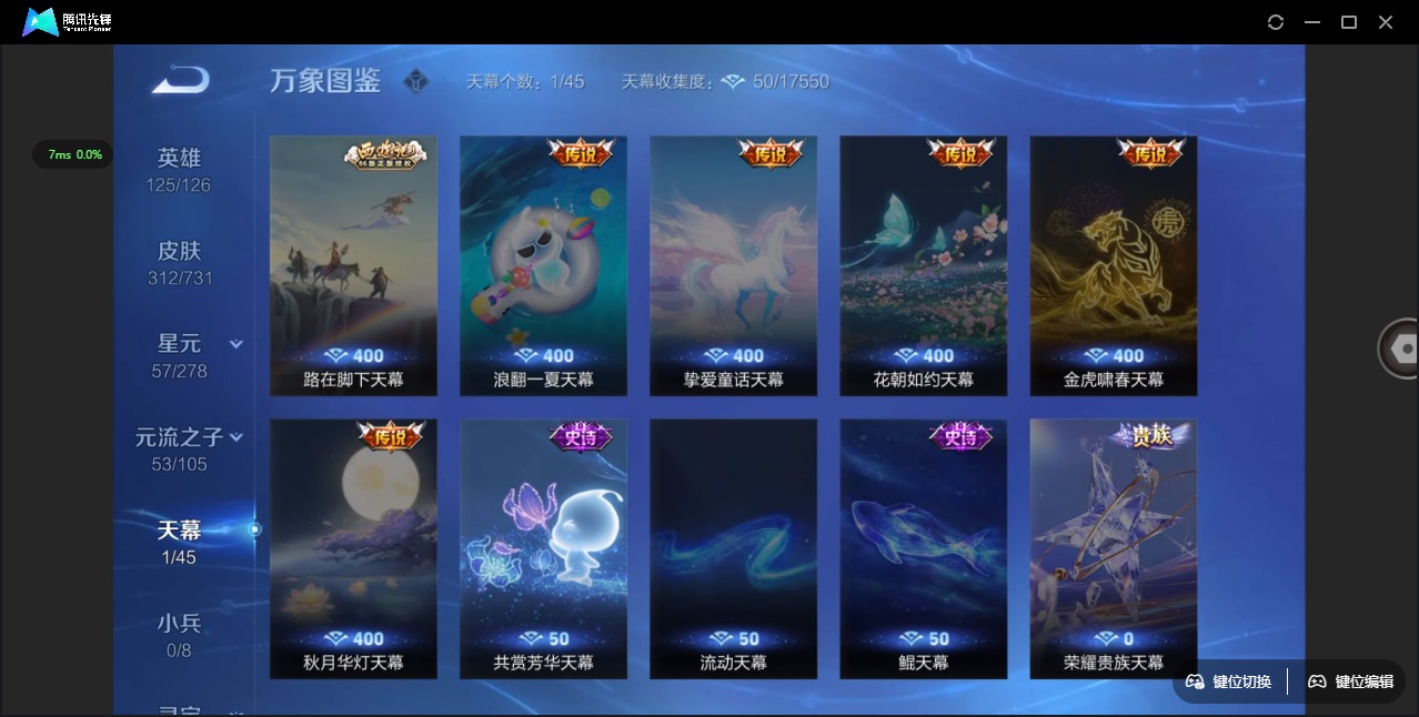 - PX_2101535-/皮肤190/典藏2/传说19/史诗49/英雄123/天鹅之梦/伽罗最初的交响/金色仲夏夜/真我赫兹瑶/嫦娥器灵落星盏/张飞兔狲蓬尾/瑶大耳狗之梦/安琪拉酷洛米之心/女武神/特工战影/地狱之眼/仲夏夜之梦/黄金射手座/黄金狮子座/云霓雀翎/久胜战神/猫影幻舞/一念神魔/启明星使/炽阳神光/飞鸢探春/音你心动男/游龙清影/淬星耀世/至美化雀舞/虞姬愿照岁时盈/妲己愿照众生和/女