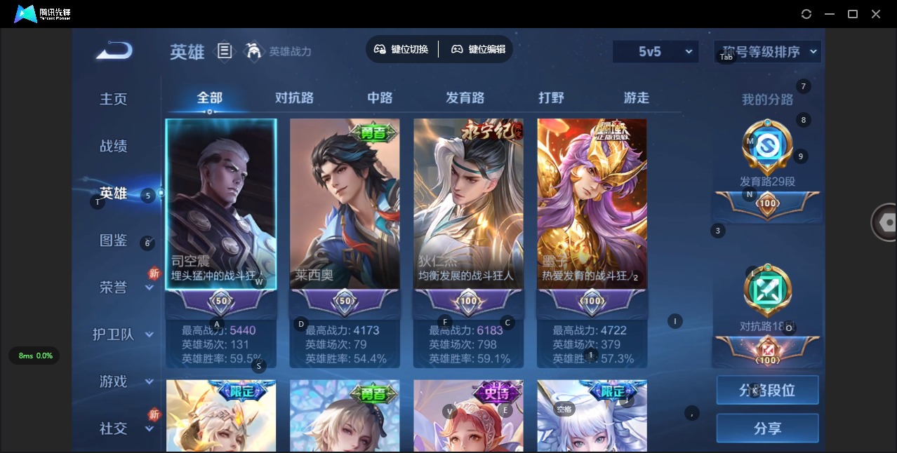 - [11607786]V7 1典藏 1珍品传说 5传说 123英雄 236皮肤 可修改实名 优质装备:全息碎影(猴子典藏),怪盗基德,一念神魔,李逍遥 珍宝阁皮:妄想食味,玩趣恶龙 限定皮:鸣野蒿,时雨天司(水龙头),遇见飞天,高山流水,五谷丰年,青龙志(铠年限),御风骁将(吕布年限),逐梦之影,辉光之辰,霸王别姬-项羽,猪悟能,寅虎·赤拳(老虎年限) 史诗皮:星界战将,百相守梦-周瑜,怒海争锋,蒙犽顽岩魄,蔬乡物语(鲁班七号),百相守梦-百里守约,百相守梦-黄忠,苍穹之光,电玩小子(小书包),特工魅影,千年之狐,百解令(蒙犽),高渐离燃音魔法,蒙恬荣光圣徽,冰冠公主,电玩·爆裂旋风,龙骑士(小龙虾),末日机甲-吕布,乱世虎臣,节奏热浪,修罗,女仆咖啡,摇滚巨星,水果甜心,星夜王子,德古拉伯爵,幽灵船长,鬼剑武藏,心灵战警,舞动绿茵,拒霜思,乘风破浪,逐浪之夏,水晶猎龙者,曙光守护者,热力回旋,箭羽风息,金属风暴,原初追逐者,鹰眼统帅,黎明之约,无心