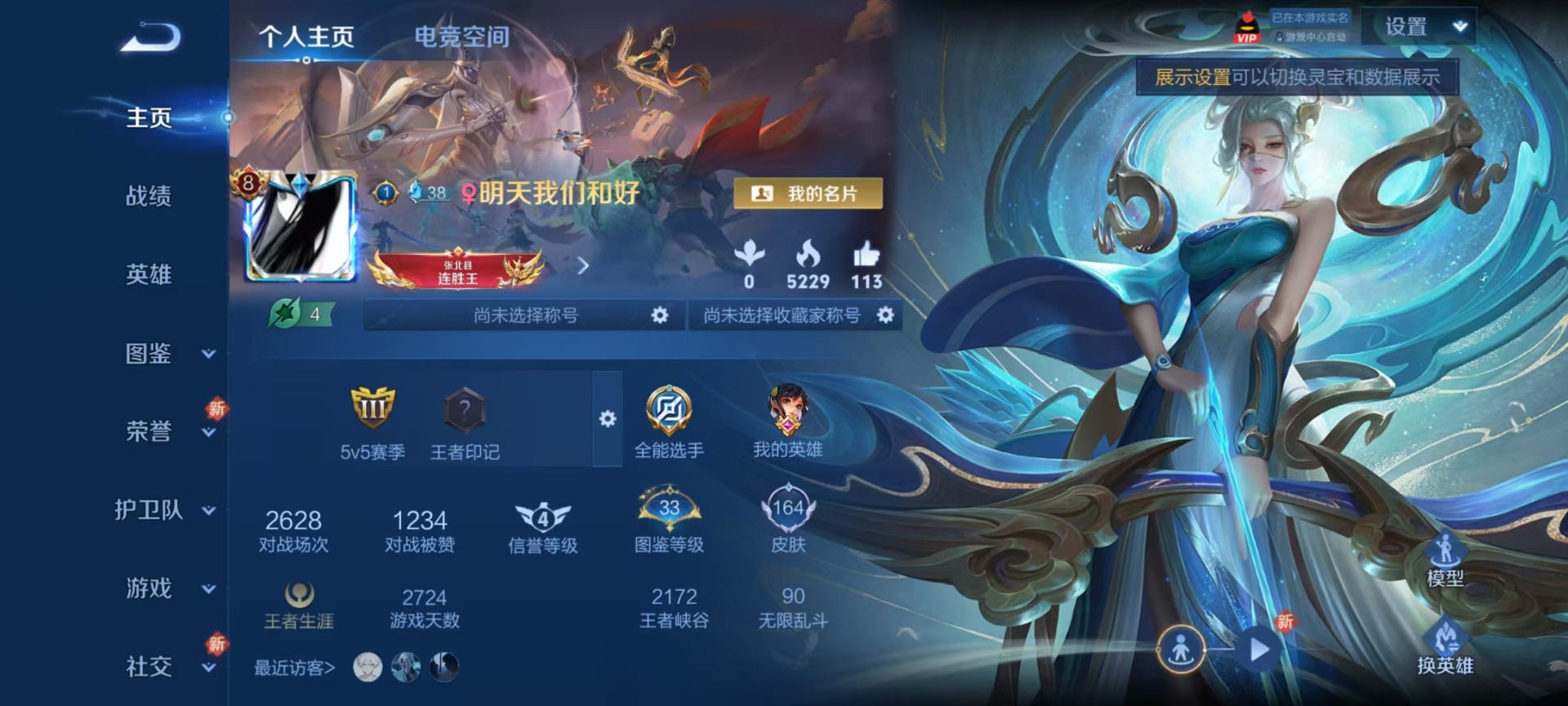 - PX_2095046-贵族等级: V3 英雄数: 98 皮肤数: 104 传说皮: 花朝如约 限定皮: 游园惊梦,鸣野蒿,逐霄战戟