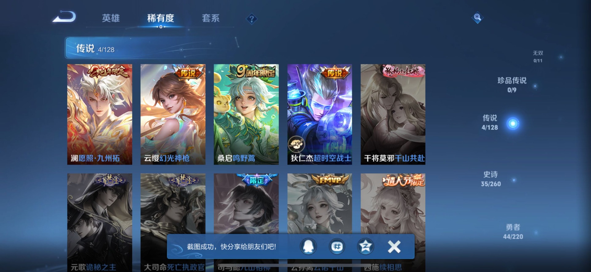 - [12139989]V9 2典藏 19传说 124英雄 224皮肤 可修改实名 优质装备:星域神启(倪克斯贼亮),幻阙歌(貂蝉典藏),黄金射手座,云鹰飞将(小将军),猫影幻舞,久胜战神,云霓雀翎,仲夏夜之梦(大飞蛾),李逍遥,游龙清影(小青龙),挚爱之约,碎云,鹤羽星尊 传说皮:乘龙·铭钟鼎(赵云年限) 珍宝阁皮:蔷薇恋人 限定皮:鸣野蒿,凤求凰(白切鸡),武陵仙君(小桃花),时雨天司(水龙头),山海·碧波行(瑶年限),天狼运算者,朱雀志(守约年限),孙行者,时之祈愿-云中君,时之祈愿-瑶(瑶传限),玉兔公主,深海之息(深海大菠萝),匿光启智者,神器·万象笔,山海·玄木吟(马可年限) 史诗皮:鸭鸭历险记-刘禅,谪仙醉月,石田雨龙,百相守梦-周瑜,茶境仙,海诺心动手记,遇见神鹿,紫霞仙子,黄金分割率,特工魅影,真我赫兹(百里守约),冰冠公主,青蛇,偶像歌手,末日机甲-吕布,时之恋人-孙尚香,乱世虎臣,水果甜心,绅士熊喵,心灵骇客,幽灵船长,鬼剑武藏,心灵战警,纤云弄巧,繁星吟游(呼啦呼啦),逐浪之夏,金属风暴,鹰眼统帅,魅力维加斯,未来纪元-赵云