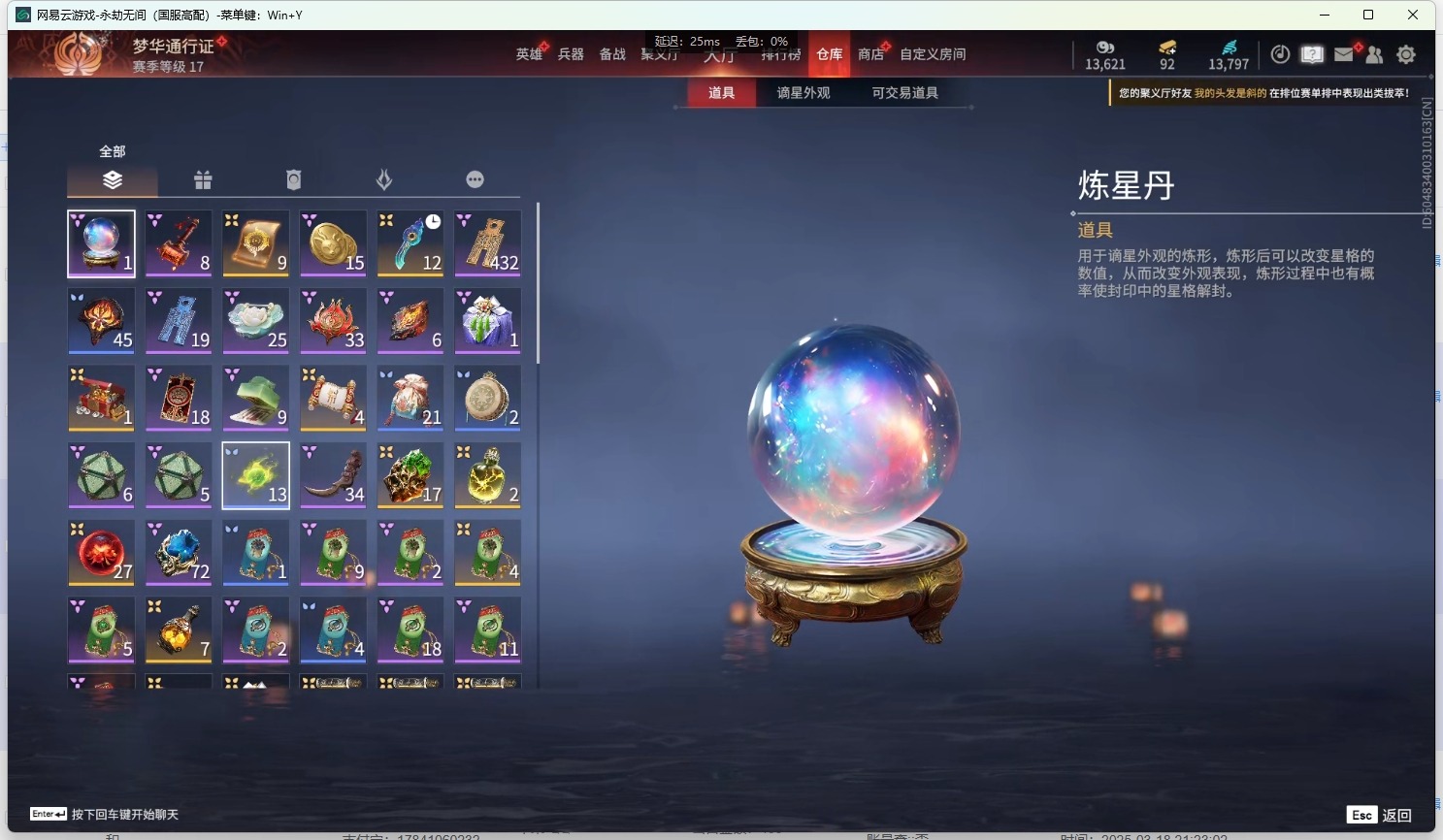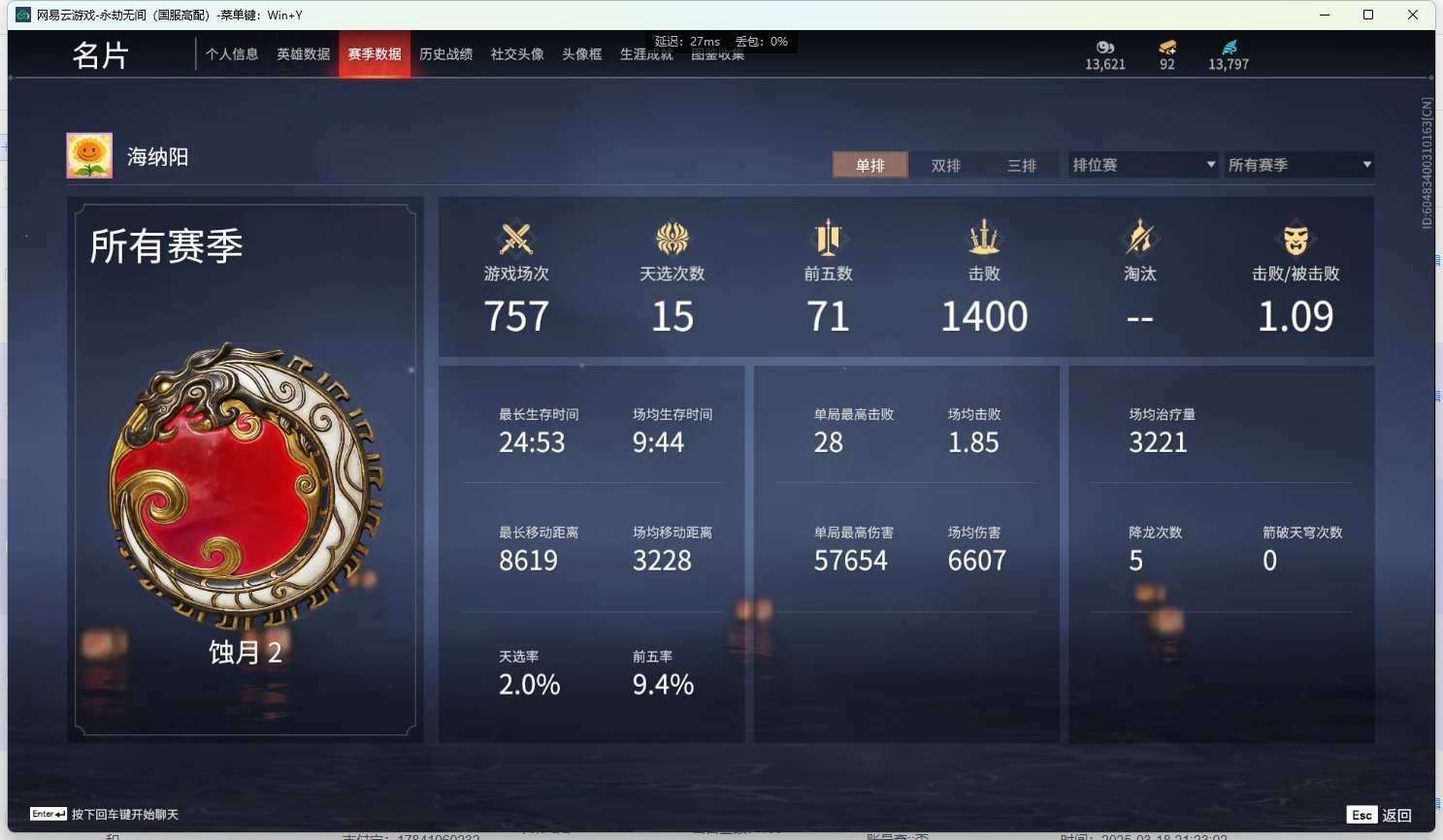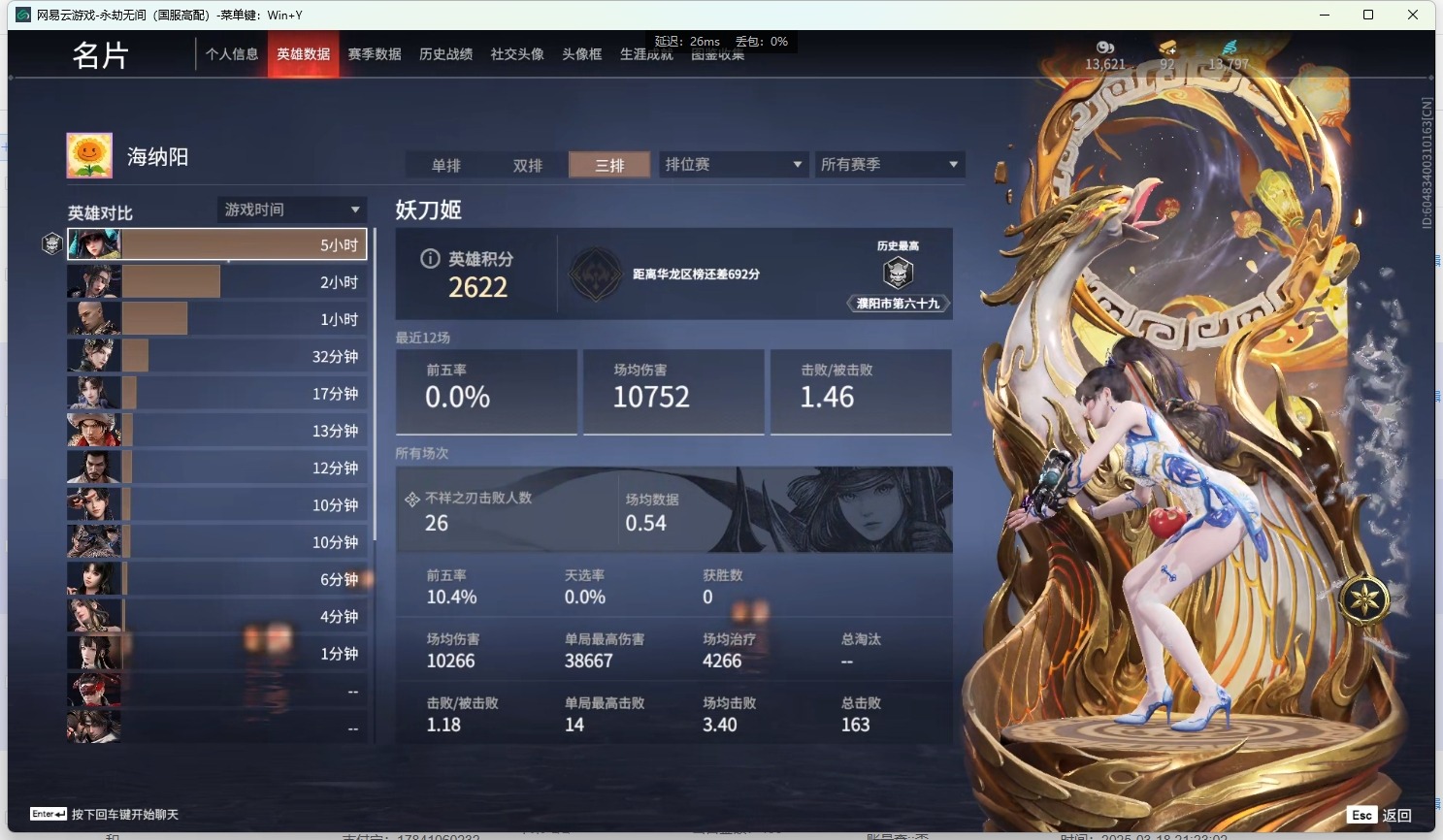 - [12129876]4橙皮 1金皮 4紫皮 16皮肤 14英雄 51卡面 465已用源晶 未定级 优质装备:正义-781-A协议,狂徒-紫阙金琅,幻影-天界神兵2.0,狂徒-日冕雄师,天玄刀,堕天遗武 仪式匕首,影钩 佩枪皮肤:鬼魅-掠影2.0 步枪皮肤:狂徒-虚空遗器 1