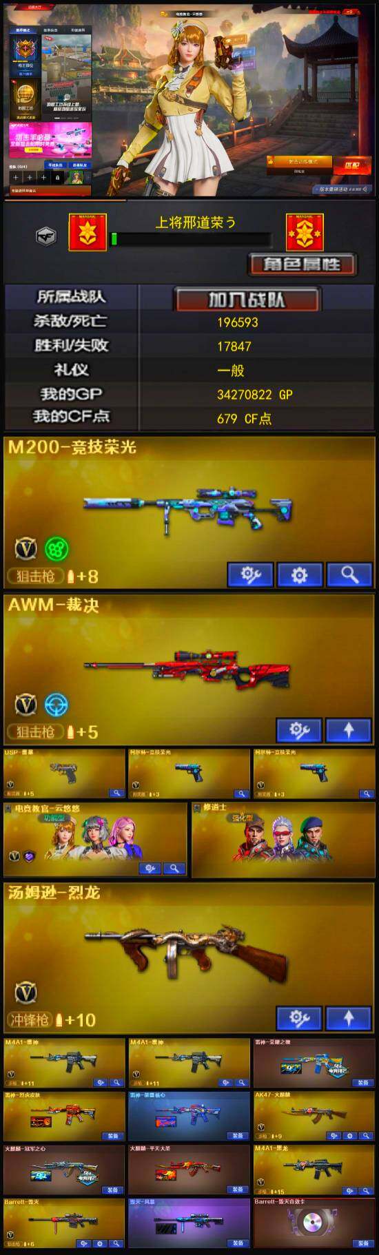 【英雄级武器】:M200-竞技荣光,柯尔特-竞技荣光*2,擎天-竞技荣光,高爆手雷-竞技荣光*3,烟雾弹-竞技荣光*3,闪光弹-竞技荣光*3,USP-雷暴,M4A1-雷神*2,M4A1-黑龙,汤姆逊-烈龙,AK47-火麒麟,AK47-黑武士,AWM-天龙,Barrett-毁灭,AWM-裁决,AK47-机械迷城,AK-47-猩红传说,AK47-B-战神,M4A1-赤狱骑士,沙鹰-天神,沙鹰-修罗,龙啸,屠龙*2