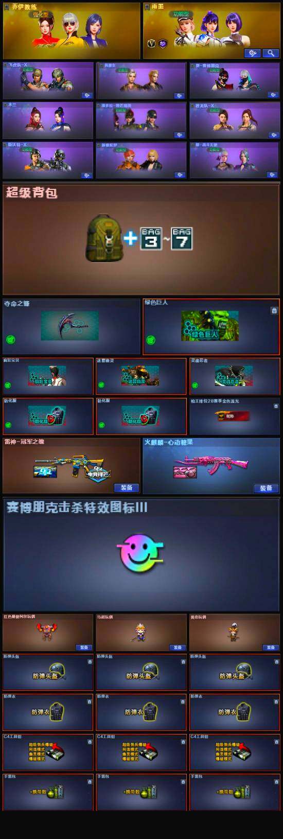 - PX_2106711- 苹果手Q-13王牌印记-11粉装-7特效枪-4载具-56732热力值-117套装-156枪皮-1卓越印记-1传奇印记 【11粉装】,梦幻火箭,缤纷油彩,放客神游,第五大道,洛天依,暖暖奶龙,极致幻想,圣堂之誓,冰霜白皇,炙焰红王,心之回忆 【7特效枪】AKM-炫紫旋律-5级 SCAR-L-童趣迷兔-5级 M416-五爪金龙-5级 Kar98K-巳巳如意-5级 DP-28-圣