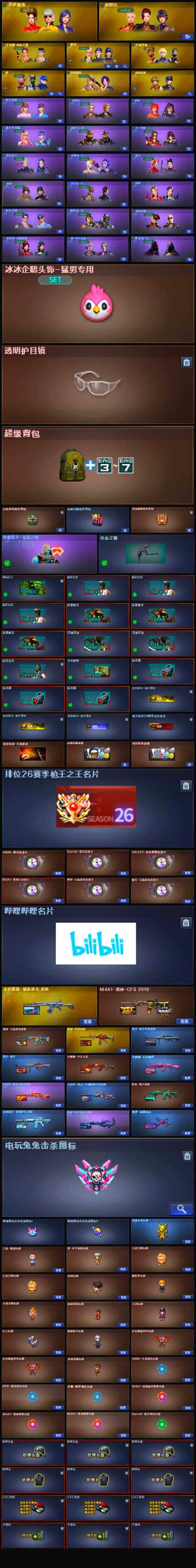 【音效卡】:修罗-云海游龙音效卡,擎天-云海游龙音效卡,M4A1-黑骑士音效卡,Barrett-毁灭音效卡,QBZ03-金色蔷薇音效卡,AWM-裁决音效卡