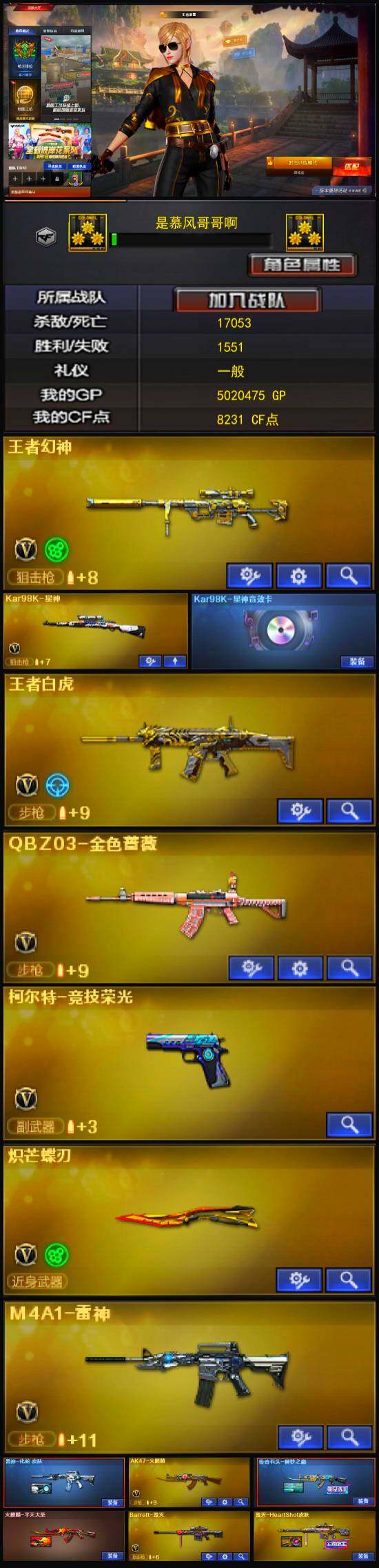 【热门武器】:QBZ03-金色蔷薇,金色蔷薇-古蛇迷踪,修罗-古蛇迷踪,Kar98K-星神,炽芒蝶刃