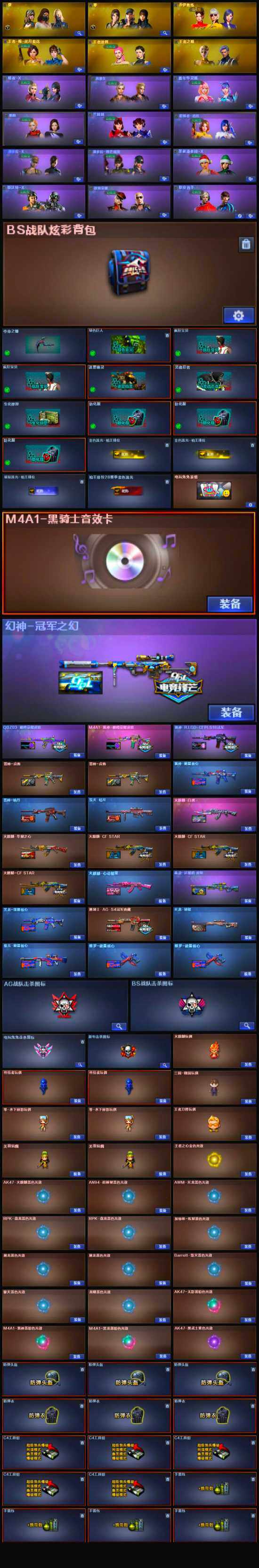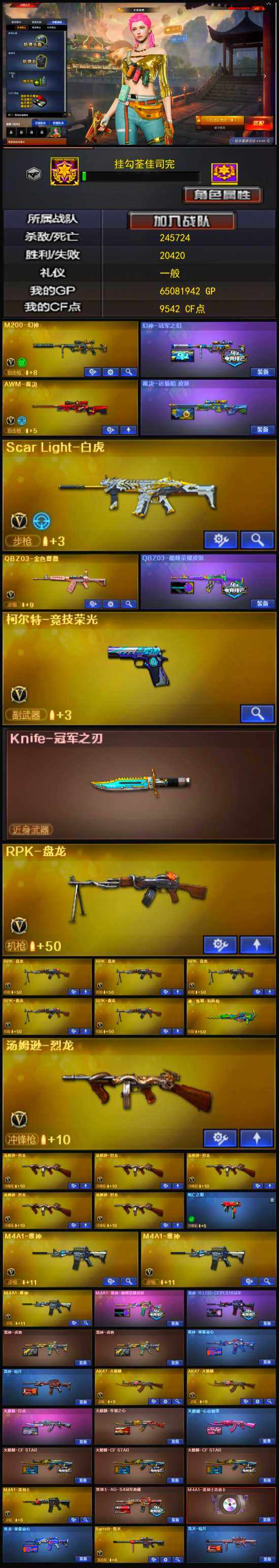 【热门武器】:QBZ03-金色蔷薇,Scar Light-白虎,M200-幻神,死亡之眼,金色小号,M4A1-黑骑士,汤姆逊-烈龙*6,RPK-盘龙*6,沙鹰-修罗*3,Knife-冠军之刃