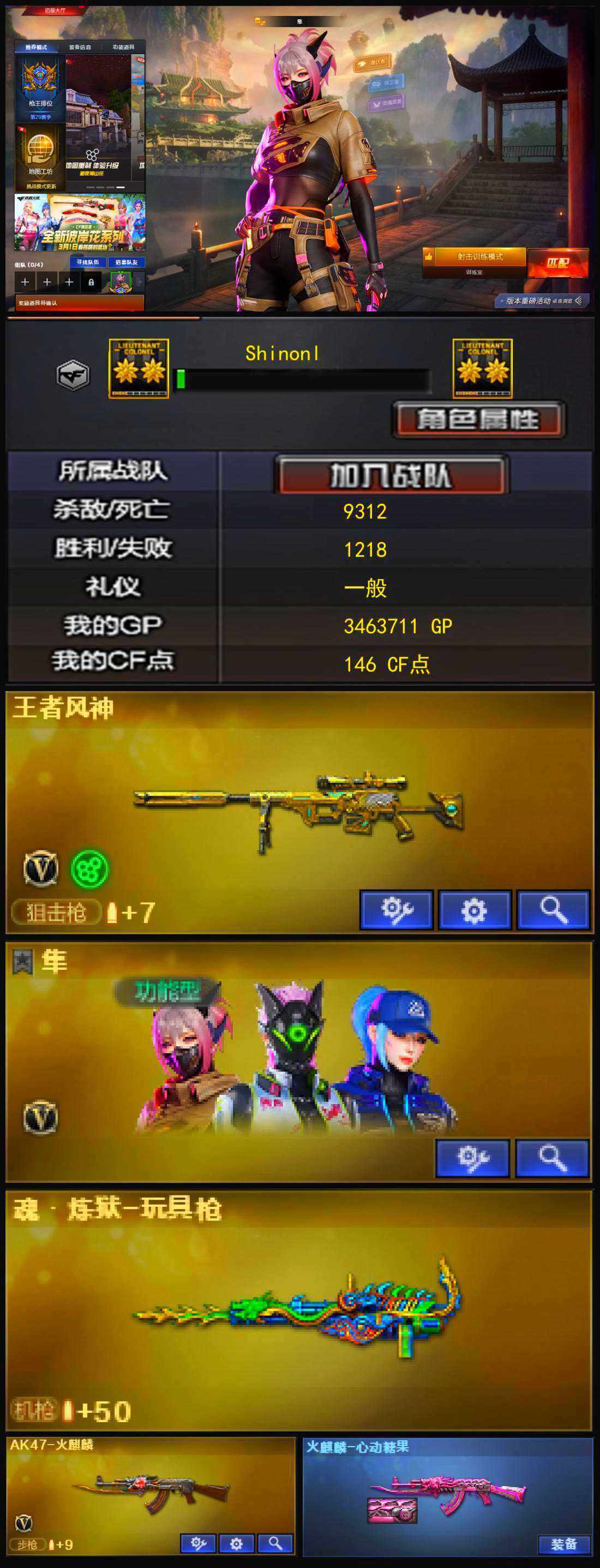 - PX_2082777-实名: 可修改 时装数: 158 枪械数: 56 战备数: 50 热门装扮: 幻彩电音 稀有枪皮: Kar98K-巳巳如意【5级】,AKS-74U-星穹咏叹调【5级】