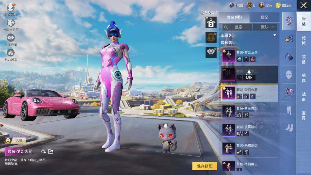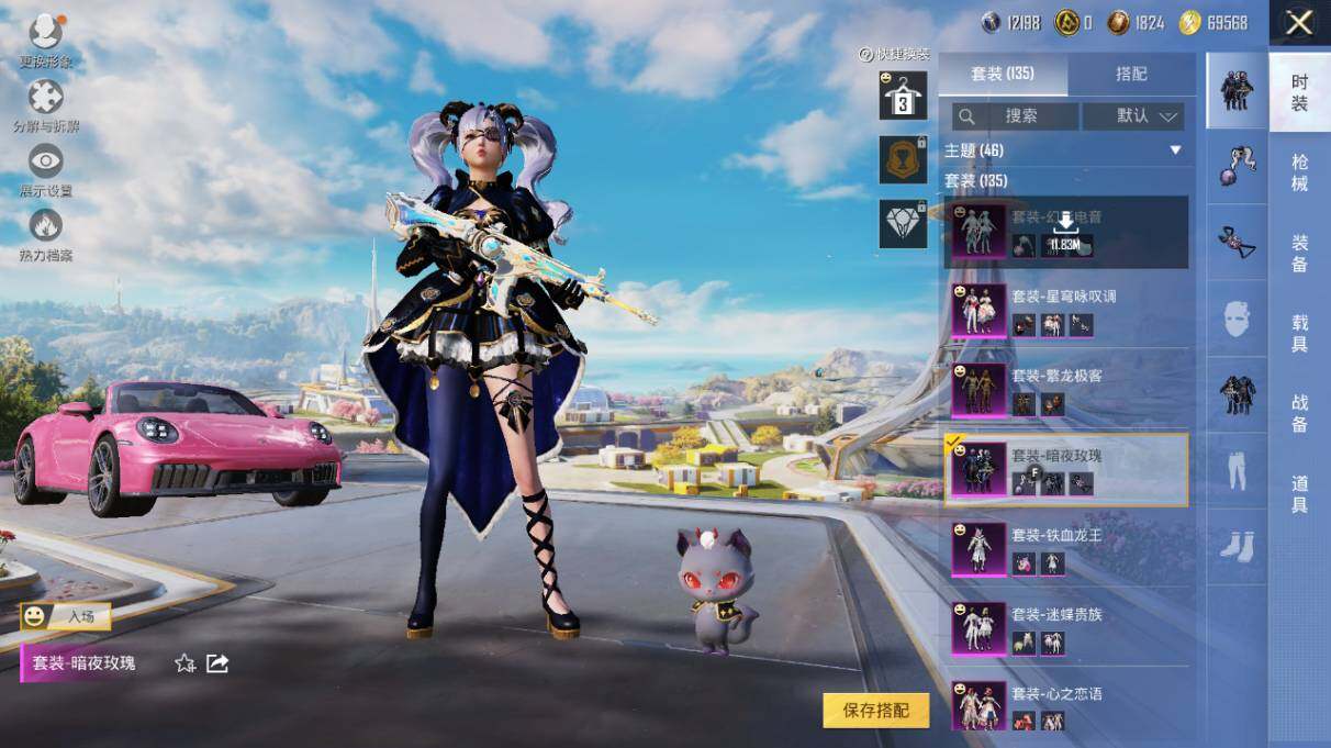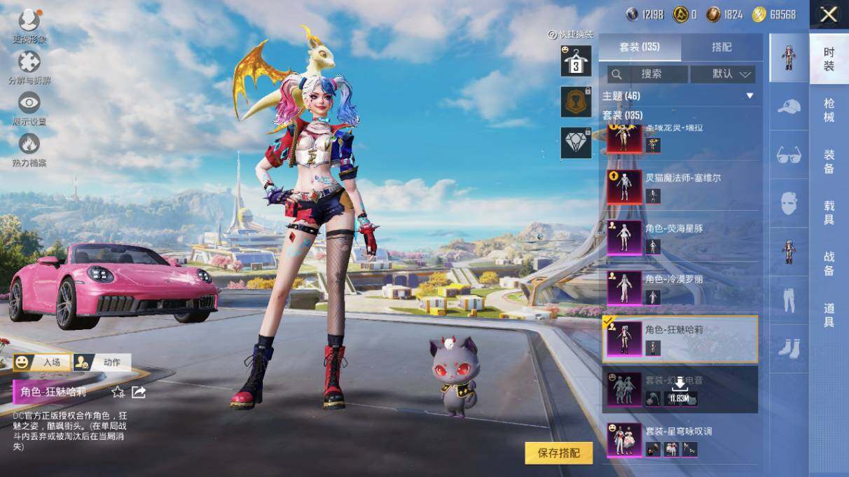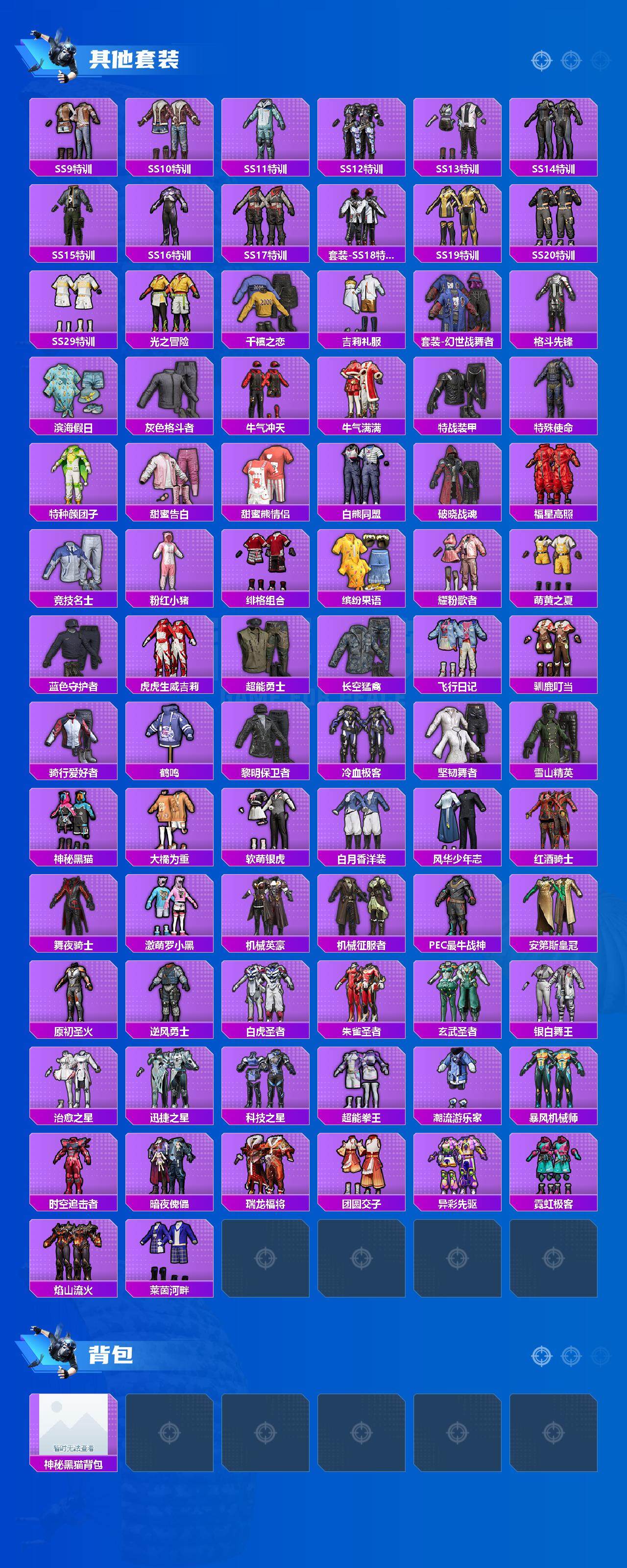 【粉色套装】:粉装-梦幻火箭,粉装-古堡领主,粉装-彗云及圣,粉装-心之恋语,粉装-迷蝶贵族,粉装-铁血龙王,粉装-暗夜玫瑰,粉装-繁龙极客,粉装-星穹咏叹调,粉装-幻彩电音,角色-狂魅哈莉,角色-冷漠罗丽,角色-荧海星豚