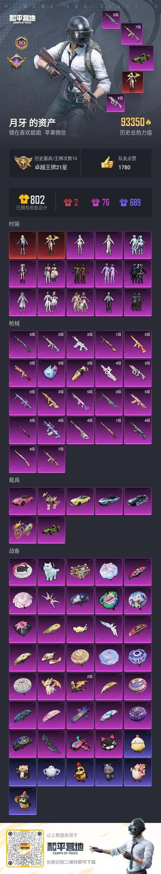 - PX_2009919- 苹果手Q-7王牌印记-3粉装-6特效枪-1载具-45562热力值-85套装-143枪皮-3卓越印记-1传奇印记 【3粉装】,第五大道,星云暗核,炫光之旅 【6特效枪】AKM-星际浪客-7级 SCAR-L-青春物语-7级 M416-电玩时刻-5级 Kar98K-巳巳如意-5级 M24-镜域双华-3级 M417-第五大道-4级 【1稀有紫装】,龟仙人, 【1稀有载具】,合金