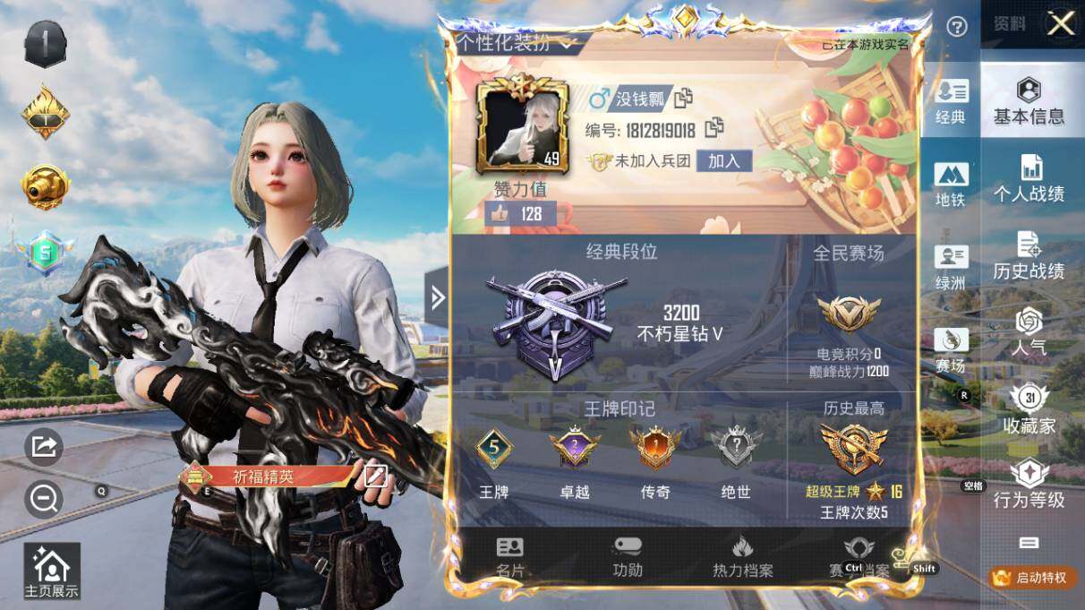- [11657328]总资产:158.1M 10传说枪械 哈夫币:134K 进阶安全箱(9.17到期) 可二次 可修改实名 烽火地带段位:青铜 全面战场段位:无段位 传说武器皮肤:UZI冲锋枪-特斯拉线圈,M16A4突击步枪-狩猎时刻,AK-12突击步枪-特斯拉线圈,SR-3M紧凑突击步枪-特斯拉线圈,勇士冲锋枪-能天使-午夜邮差,Vector冲锋枪-狩猎时刻,G3战斗步枪-狩猎时刻,复合弓-黑-天际线,M4A1突击步枪-阿米娅,CAR-15突击步枪-阿米娅