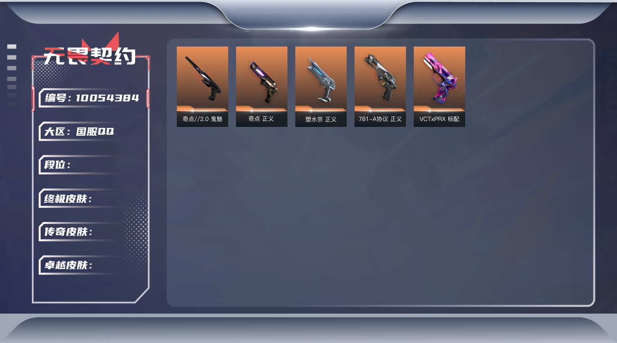 [10054384]Lv117 总皮肤134,刀皮14枪皮120(终极3传奇17卓越6),套装2(传奇2)