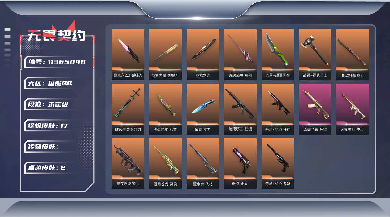 侦察力量_蝴蝶刀,威龙之刃,珍珠棘贝_短剑,超限闪存_匕首,钢轨卫士_战锤,破败王者之残刃,沙尘幻旅_匕首,神罚_军刀