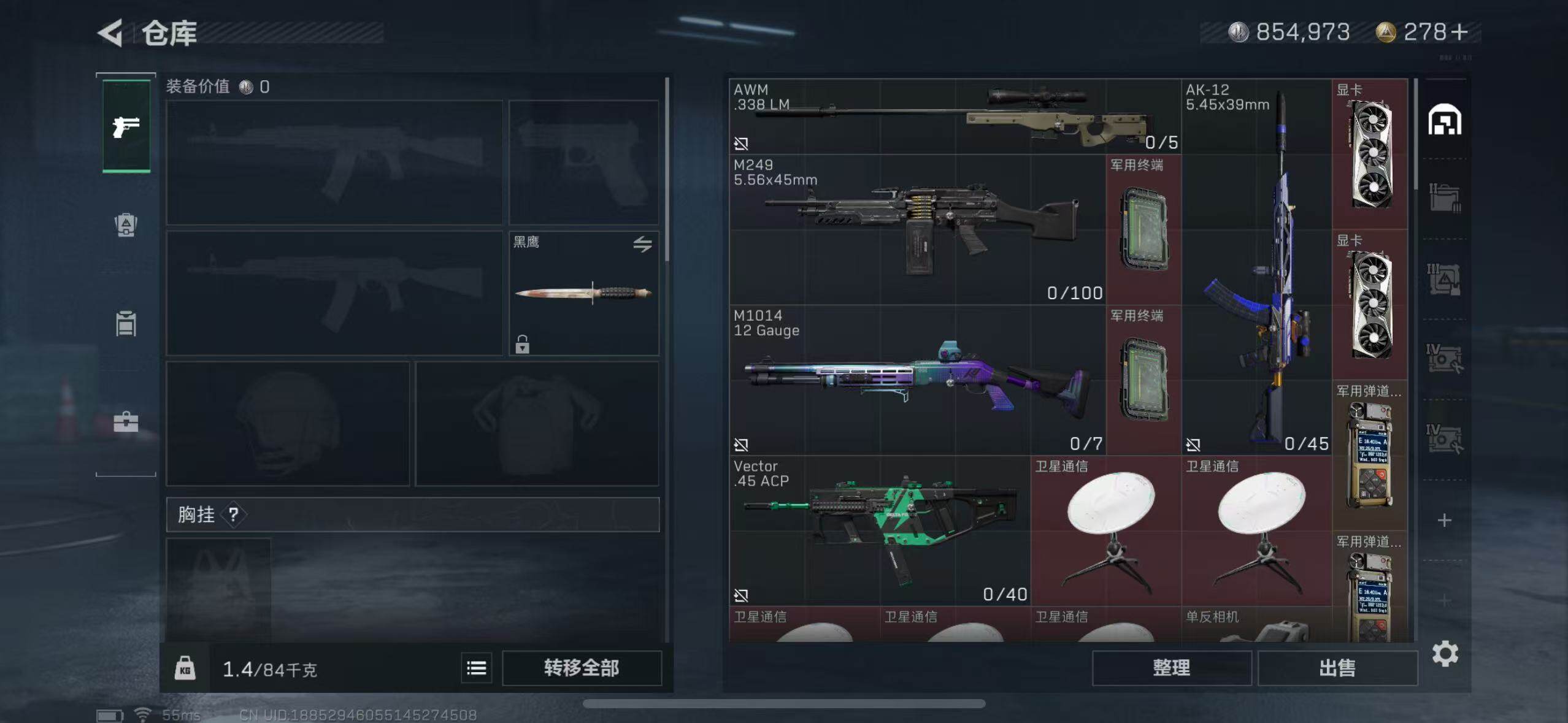 [12037348]总资产(M):69.9M/哈夫币(K):854973:水墨云图,AK-12突击步枪-夜鹰