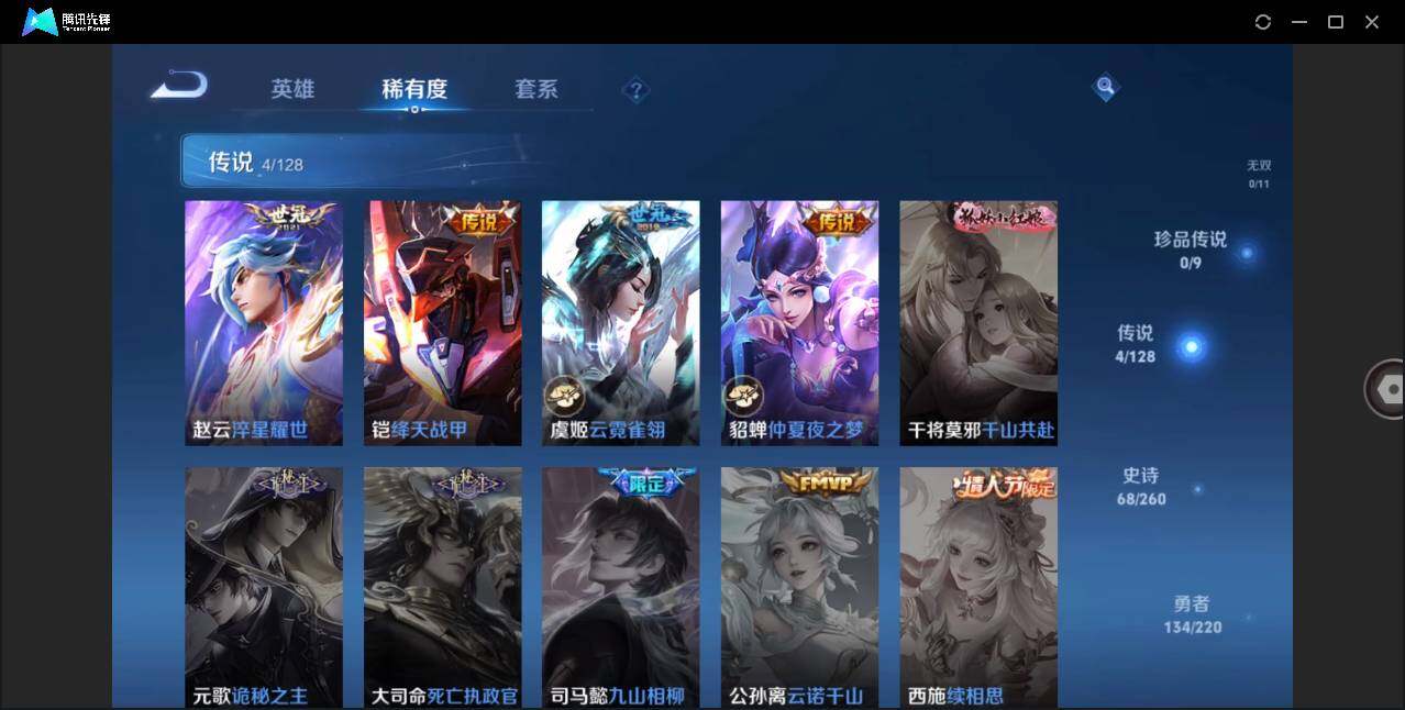 - [11657214]V9 4典藏 28传说 124英雄 345皮肤 可修改实名 优质装备:天鹅之梦(小乔典藏),鸣剑·曳影,幻阙歌(貂蝉典藏),拾光映像(瑶典藏),冠军飞将,云鹰飞将(小将军),久胜战神,一念神魔,仲夏夜之梦(大飞蛾),飞鸢探春,乞巧织情,游龙清影(小青龙),山海·琳琅生(小乔年限),鹤羽星尊,霜月吟,诡秘之主,千山共赴,涂山容容 传说皮:死亡执政官,九山相柳,云诺千山 珍宝阁皮:优雅恋人,蔷薇恋人 限定皮:逐霄战戟,至尊宝,白虎志(电光耗子),凤求凰(白切鸡),凤凰于飞,太华(伽罗年限),梅西,武陵仙君(小桃花),异界灵契(白毛香),傲雪梅枪,寅虎·展翼(孙膑年限),星穹之声,时之彼端,白鹤梁神女,白晶晶,时雨天司(水龙头),飞衡(韩信年限),山海·碧波行(瑶年限),瑞麟志(木兰年限),至美·化雀舞,遇见飞天,高山流水,降魔,五谷丰年,游园惊梦,梁祝,逐梦之星,天狼绘梦者,李小龙,朱雀志(守约年限),如梦令-后羿,霸王别姬-虞姬,默契交锋-花木兰,孙行者,一生所爱,大圣娶亲,云端筑梦师,匿光追影者,女儿国国王,时之祈愿-瑶(瑶传限),玉兔公主,启示之音,深海之息(深海大菠萝),唐三藏,时之奇旅-妲己,神器·万象笔,山海·玄木吟(马可年限) 史诗皮:赞萌露比,化蝶舞,龙之律动,百相守梦-周瑜,幻珠鲛人,涂山红红,东方月初,琥珀纪元伽罗,乘龙·聚宝船(安琪拉年限),乘龙·忆丹青(大乔年限),织梦人,守夜人,遇见神鹿,紫霞仙子,电玩小子(小书包),黄金分割率,江河有灵,匿光侦查者,魅语,蒙恬荣光圣徽,无限星赏官,冰冠公主,偶像歌手,白蛇,晚萤,电玩·爆裂旋风,银翎春语,龙骑士(小龙虾),末日机甲-吕布,猫狗日记-孙策,乱世虎臣,节奏热浪,修罗,女仆咖啡,水果甜心,星夜王子,心灵骇客,德古拉伯爵,暗隐猎兽者,鬼剑武藏,心灵战警,舞动绿茵,地狱岩魂,诗语江南,纤云弄巧,繁星吟游(呼啦呼啦),拒霜思,缤纷独角兽,逐浪之夏,水晶猎龙者,唤灵魅影,金属风暴,原初追逐者,圣诞恋歌,鹰眼统帅,魅力维加斯,黎明之约,奇遇舞章,无心,未来纪元-赵云