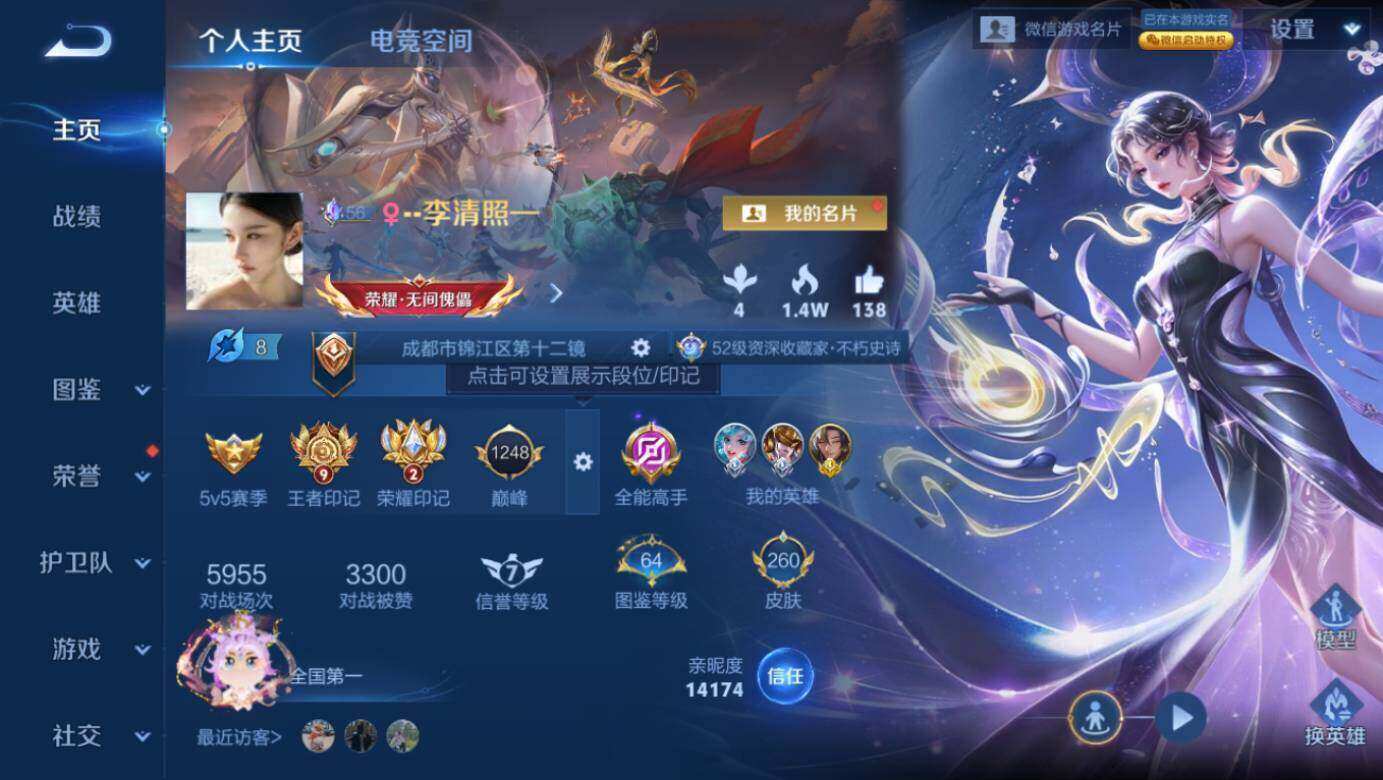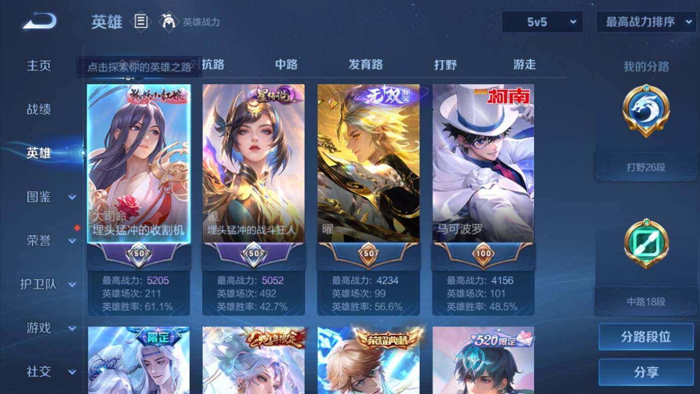 - PX_2086074-实名: 可修改 贵族等级: V5 英雄数: 58 皮肤数: 30 珍品传说: 大耳狗之梦,黑崎一护 传说皮: 花朝如约