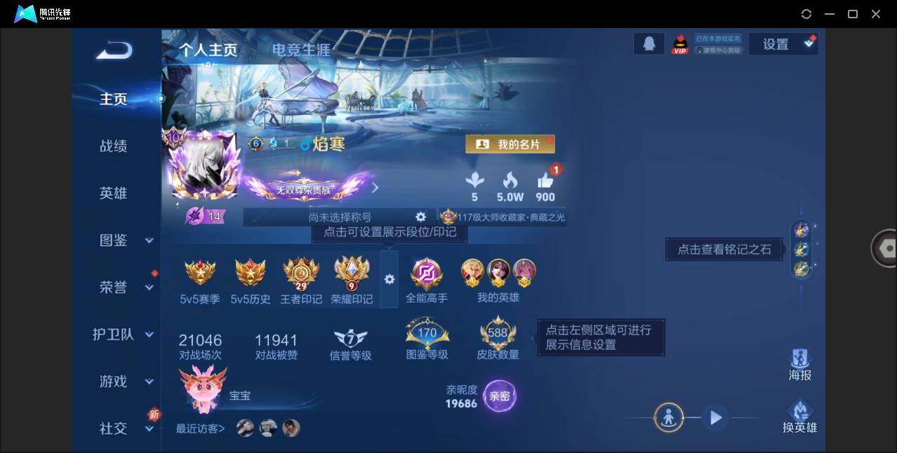 - [11796499]V7 11传说 123英雄 184皮肤 可修改实名 优质装备:黄金狮子座,冠军飞将,炽阳神光,一念神魔,零号·赤焰,李逍遥,淬星耀世,超时空战士-狄仁杰,涂山容容 珍宝阁皮:妄想食味 限定皮:逐霄战戟,鸣野蒿,梅西,傲雪梅枪,时雨天司(水龙头),李小龙,如梦令-后羿,青春决赛季,蜜橘之夏,寅虎·赤拳(老虎年限) 史诗皮:星界战将,龙之律动,破空之剑,百相守梦-黄忠,织梦人,特工魅影,千年之狐,永昼,江河有灵,蒙恬荣光圣徽,冰冠公主,偶像歌手,晚萤,末日机甲-吕布,猫狗日记-孙策,乱世虎臣,修罗,摇滚巨星,水果甜心,星夜王子,德古拉伯爵,暗隐猎兽者,幽灵船长,鬼剑武藏,心灵战警,地狱岩魂,纤云弄巧,繁星吟游(呼啦呼啦),逐浪之夏,月团寄思,水晶猎龙者,曙光守护者,金属风暴,原初追逐者,鹰眼统帅,赏金猎手,未来纪元-赵云