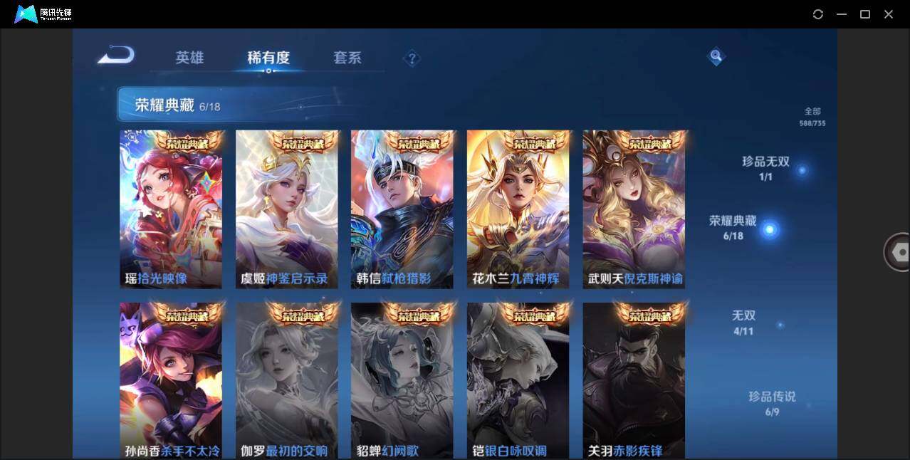 【荣耀典藏】:武则天英雄,武则天倪克斯神谕,孙尚香杀手不太冷,花木兰九霄神辉,韩信弑枪猎影,虞姬神鉴启示录,瑶拾光映像