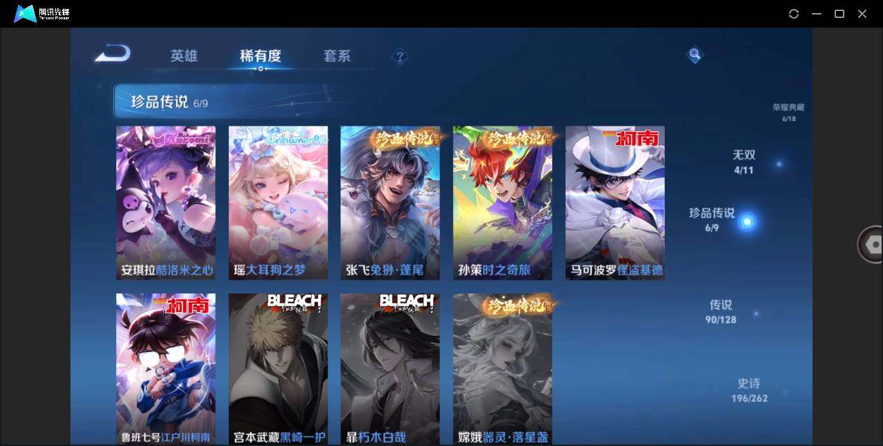 - [12087805]V8 1典藏 15传说 125英雄 359皮肤 可修改实名 优质装备:鸣剑·曳影,云鹰飞将(小将军),地狱火,无双飞将,山海·炽霜斩(李信年限),燃星之曲,百相守梦(张飞),澜逐花归海,琥珀纪元马超 传说皮:乘龙·铭钟鼎(赵云年限),乘龙·淬吴钩(孙策年限),幻光神枪 珍宝阁皮:万物之道,优雅恋人,女武神 限定皮:愿照·山河定(司空震年限),逐霄战戟,鸣野蒿,武陵仙君(小桃花),傲雪梅枪,神威(电光马子),高山流水,匿光决锋者,五谷丰年,青龙志(铠年限),李小龙,猪悟能,匿光追影者,寅虎·御盾(廉颇年限),寅虎·心曲(虎婆),山海·玄木吟(马可年限) 史诗皮:鸭鸭历险记-刘禅,器灵·浮梦炉,化蝶舞,龙之律动,藏狐·褐绒,百相守梦-周瑜,茶境仙,海诺心动手记,破空之剑,战舞者,芈月浮光幕影,怒海争锋,上官婉儿群星魔术团,蔬乡物语(鲁班七号),琥珀纪元伽罗,百相守梦-百里守约,百相守梦-黄忠,紫霞仙子,黄金分割率,特工魅影,千年之狐,永昼,百相守梦(刘备),百相守梦(关羽),江河有灵,雪夜绮愿(周瑜),百解令(蒙犽),高渐离燃音魔法,偶像歌手,暗夜猫娘,魅语,无限星赏官,晚萤,冰冠公主,末日机甲-吕布,猫狗日记-孙策,猫狗日记-大乔,时之恋人-孙尚香,乱世虎臣,节奏热浪,修罗,女仆咖啡,摇滚巨星,水果甜心,绅士熊喵,天才门将,星夜王子,心灵骇客,时之奇旅-安琪拉,德古拉伯爵,暗隐猎兽者,幽灵船长,鬼剑武藏,心灵战警,乐园奇幻夜,舞动绿茵,地狱岩魂,纤云弄巧,拒霜思,缤纷独角兽,乘风破浪,逐浪之夏,水晶猎龙者,曙光守护者,热力回旋,唤灵魅影,金属风暴,圣诞狂欢,圣诞恋歌,鹰眼统帅,魅力维加斯,天秀·音浪,寅虎·御盾,千筹问战,无心,未来纪元-赵云