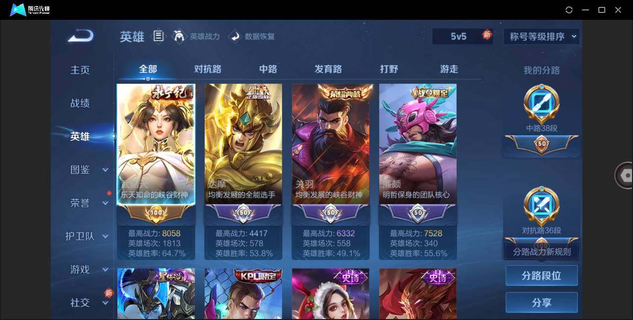 [12125545]中路38段/对抗路36段【特价急出/详情看图】:安卓Q-V8-最强王者段位-126英雄-515皮肤-5典藏-3无双-52传说-162史诗