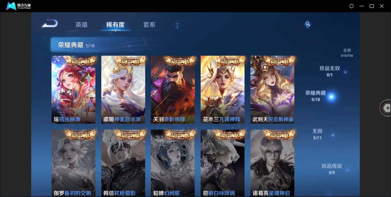 【荣耀典藏】:武则天英雄,武则天倪克斯神谕,花木兰九霄神辉,关羽赤影疾锋,虞姬神鉴启示录,瑶拾光映像