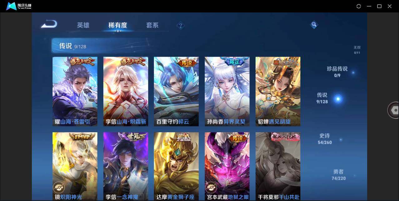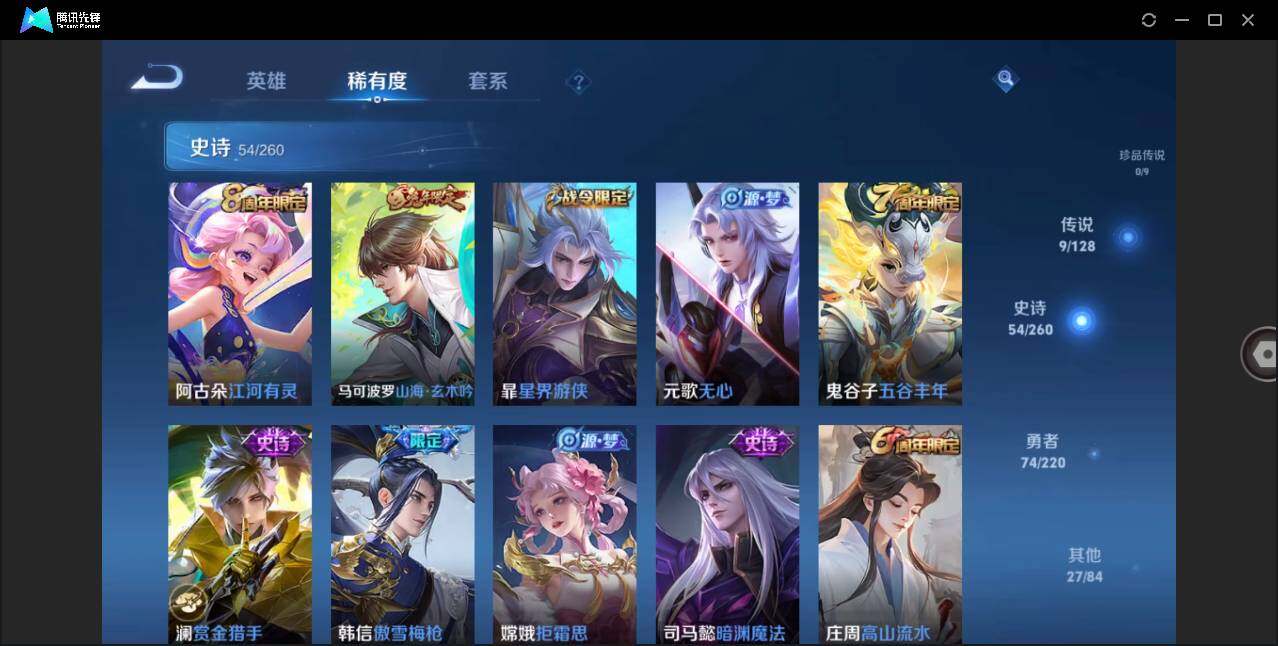 - [11912350]V6 5传说 124英雄 237皮肤 可修改实名 优质装备:绛天战甲(鸡嘴战神),超时空战士-狄仁杰,诡秘之主 传说皮:幻光神枪 珍宝阁皮:妄想食味,玩趣恶龙 限定皮:逐霄战戟,鸣野蒿,五谷丰年,李小龙,乒乒小将,美猴王 史诗皮:化蝶舞,星界战将,龙之律动,百相守梦-周瑜,茶境仙,怒海争锋,上官婉儿群星魔术团,紫霞仙子,黄金分割率,特工魅影,江河有灵,真我赫兹(百里守约),百解令(蒙犽),蒙恬荣光圣徽,偶像歌手,电玩·爆裂旋风,猫狗日记-孙策,节奏热浪,修罗,女仆咖啡,摇滚巨星,水果甜心,绅士熊喵,心灵骇客,功夫厨神,幽灵船长,鬼剑武藏,地狱岩魂,纤云弄巧,拒霜思,逐浪之夏,曙光守护者,原初追逐者,圣诞狂欢,圣诞恋歌,鹰眼统帅,魅力维加斯,无心