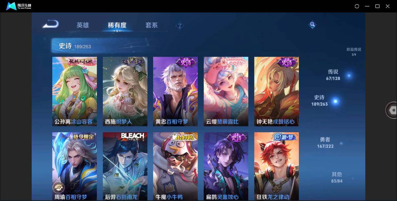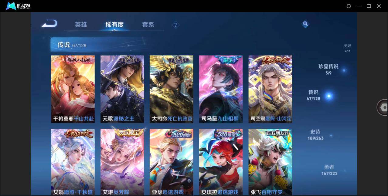 - [12235151]V7 1典藏 8传说 125英雄 271皮肤 可修改实名 优质装备:弑枪猎影(韩信典藏),冠军飞将,一念神魔,地狱之眼,碎云,山海·苍雷引(电光曜子),涂山容容 传说皮:九山相柳 珍宝阁皮:万物之道,优雅恋人,玩趣恶龙 限定皮:愿照·九州拓(澜年限),鸣野蒿,傲雪梅枪,高山流水,降魔,五谷丰年,青龙志(铠年限),梁祝,天狼溯光者,逐梦之影,如梦令-后羿,圣诞老人,猪悟能,匿光追影者,山海·玄木吟(马可年限) 史诗皮:鸭鸭历险记-刘禅,化蝶舞,灵蛊蚀心,星界战将,龙之律动,石田雨龙,蒙犽顽岩魄,琥珀纪元伽罗,百相守梦-黄忠,紫霞仙子,电玩小子(小书包),黄金分割率,特工魅影,千年之狐,江河有灵,雪夜绮愿(周瑜),百解令(蒙犽),高渐离燃音魔法,蒙恬荣光圣徽,无限星赏官,偶像歌手,电玩·爆裂旋风,银翎春语,龙骑士(小龙虾),末日机甲-吕布,猫狗日记-孙策,节奏热浪,修罗,女仆咖啡,摇滚巨星,水果甜心,星夜王子,心灵骇客,功夫厨神,德古拉伯爵,暗隐猎兽者,幽灵船长,鬼剑武藏,暗渊魔法,心灵战警,乐园奇幻夜,天秀·启明,舞动绿茵,地狱岩魂,纤云弄巧,拒霜思,乘风破浪,逐浪之夏,月团寄思,水晶猎龙者,曙光守护者,金属风暴,原初追逐者,圣诞狂欢,圣诞恋歌,鹰眼统帅,王者之锤,魅力维加斯,无心,未来纪元-赵云