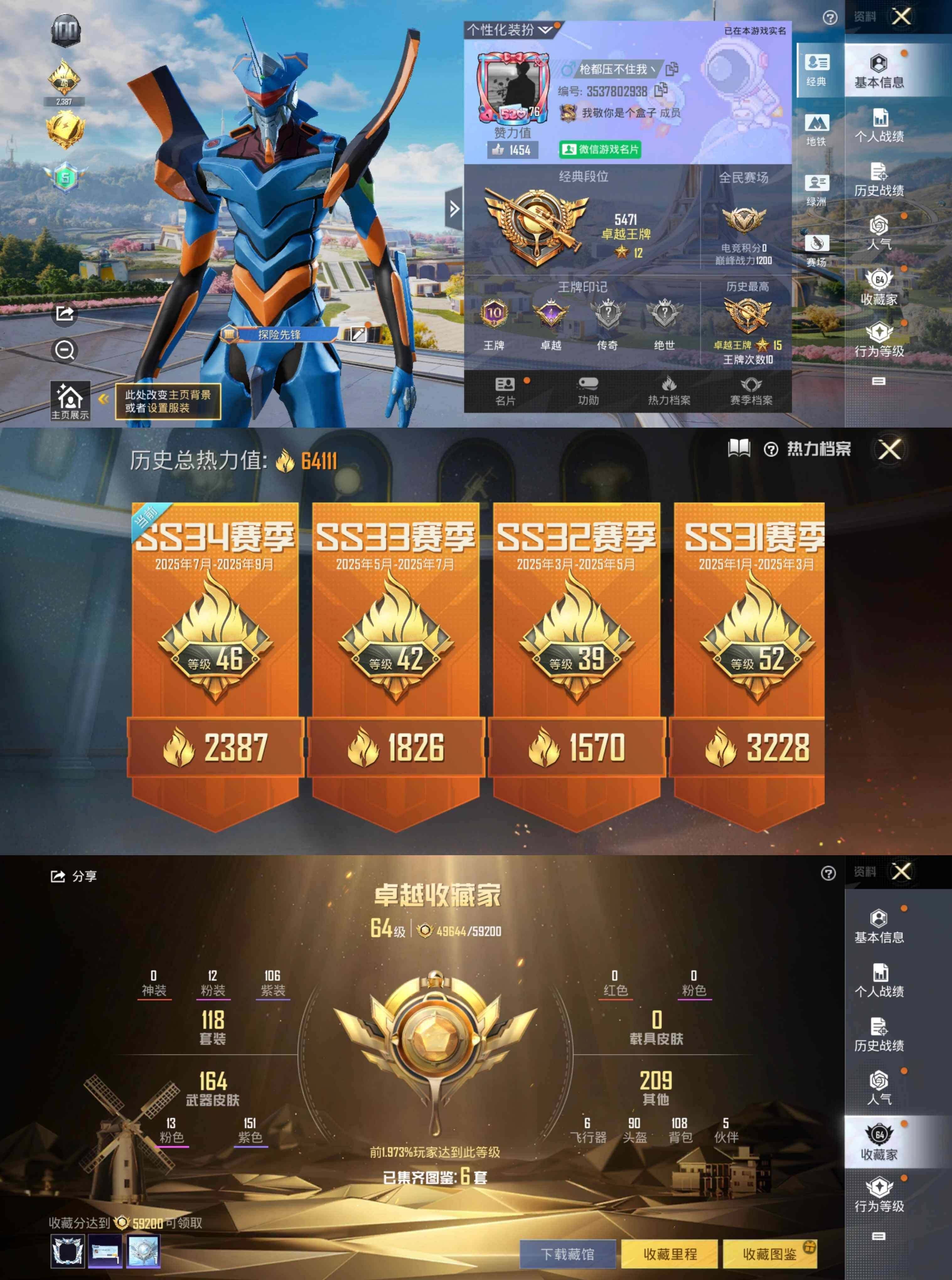 - PX_2096529- 安卓微信-3王牌印记-7粉装-3特效枪-3载具-28617热力值-53套装-62枪皮-1卓越印记-1传奇印记 【7粉装】,雪国幻梦,缤纷油彩,放客神游,绯穹魔姬,狂魅哈莉,镜光幻境,星际漫游者 【3特效枪】Mk14-甜梦熊击-5级 Vector-绯穹魔姬-4级 Vector-最终圣卫者-1级 【1红装】,最终圣卫者-帕修斯/4级, 【7稀有紫装】,冥河战士,赤蝎幽灵,萌熊