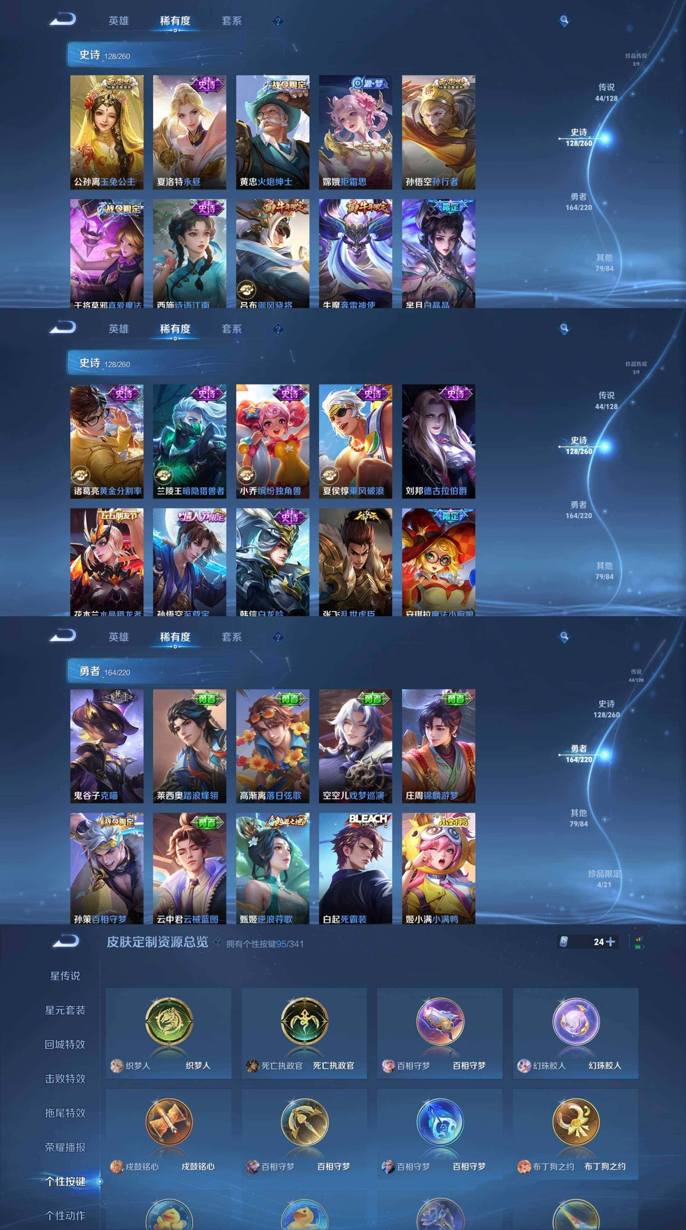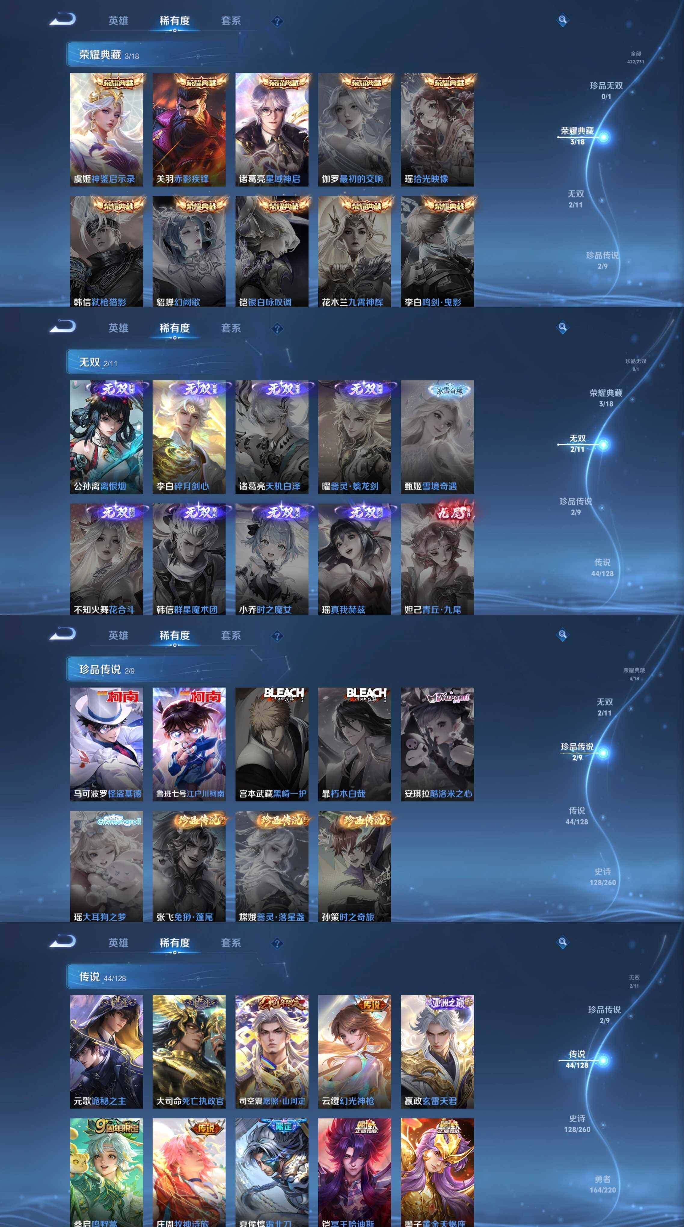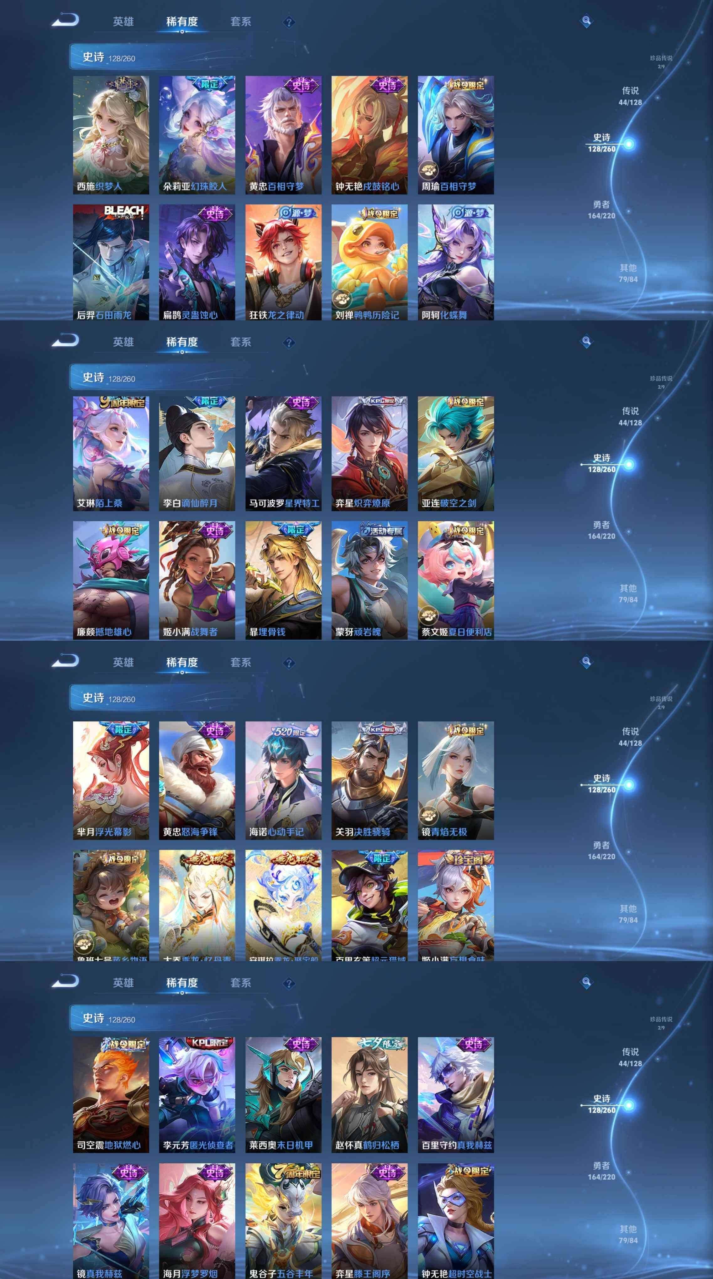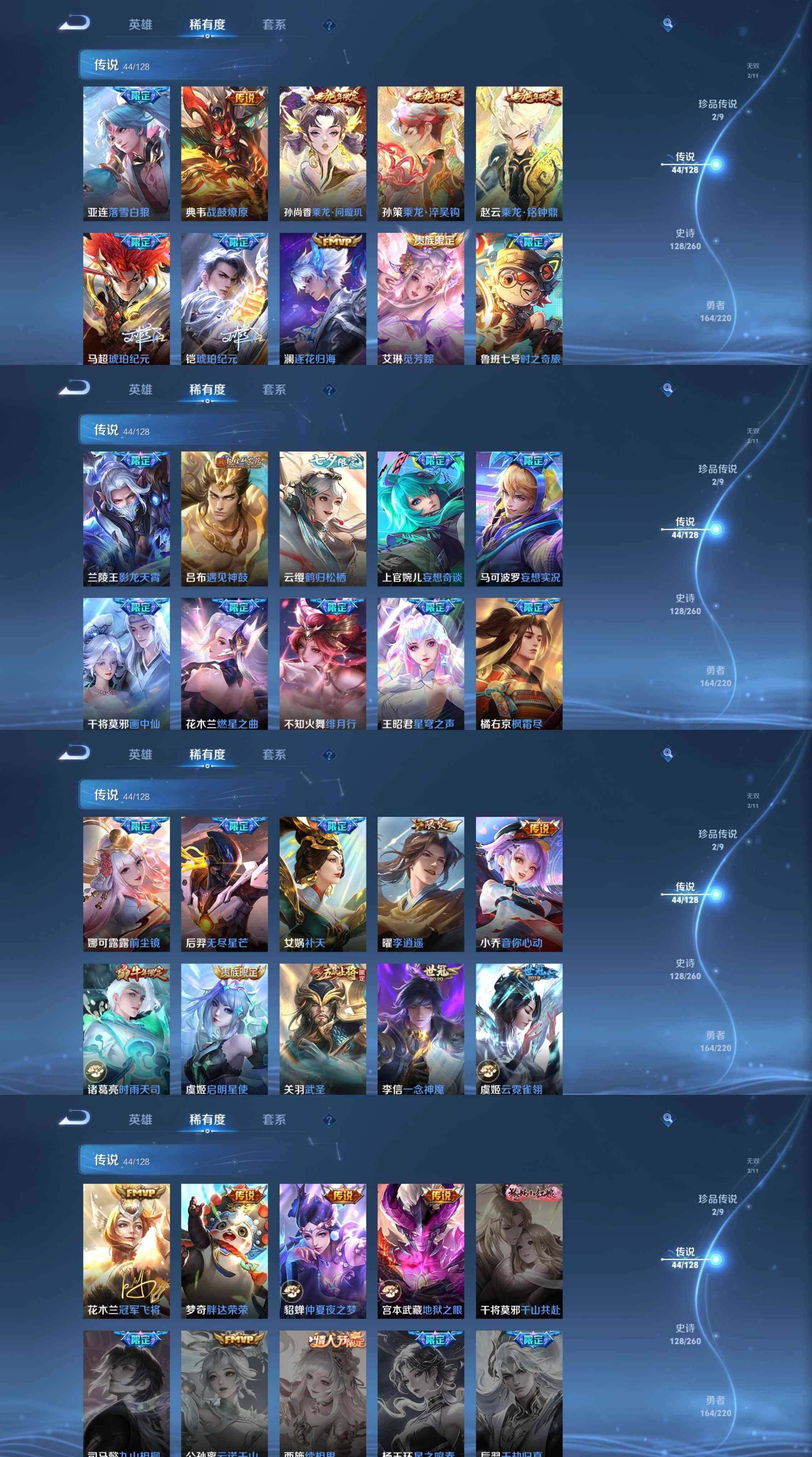 - PX_2093656-贵族5/皮肤126/传说1/史诗29/英雄124/马可波罗怪盗基德/蔷薇恋人/桑启鸣野蒿/姜子牙天穹之誓/狄仁杰阴阳师/赵云皇家上将/蔷薇恋人/元歌无心/万华元夜/沙漠行僧/项羽海滩派对/醍醐杖/演武夺筹/飞衡/王昭君午后时光/金庭之子/云中旅人/驱傩正仪/原初探秘者/鬼谷子五谷丰年/千军破阵/大漠名商/擒涛扼浪/狂铁电玩高手/拒霜思/探海日志/海盐诗旅/阿古朵江河有灵/古海