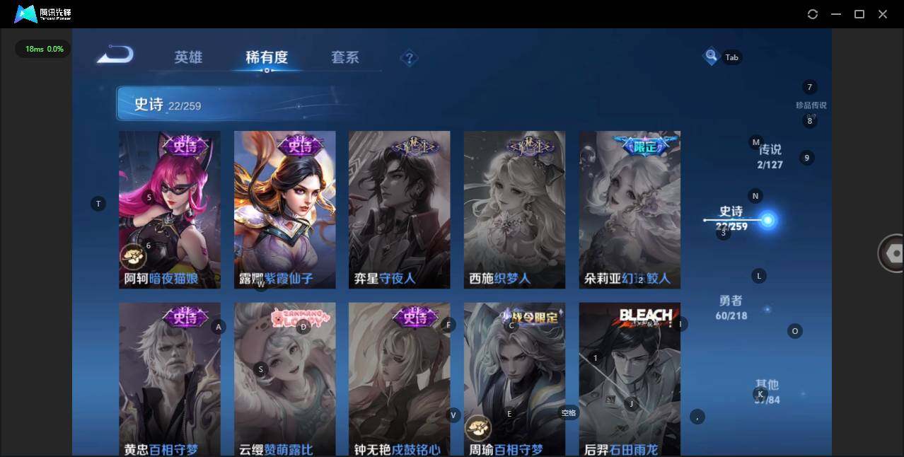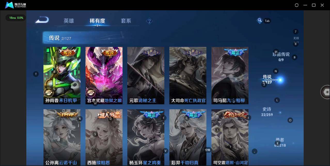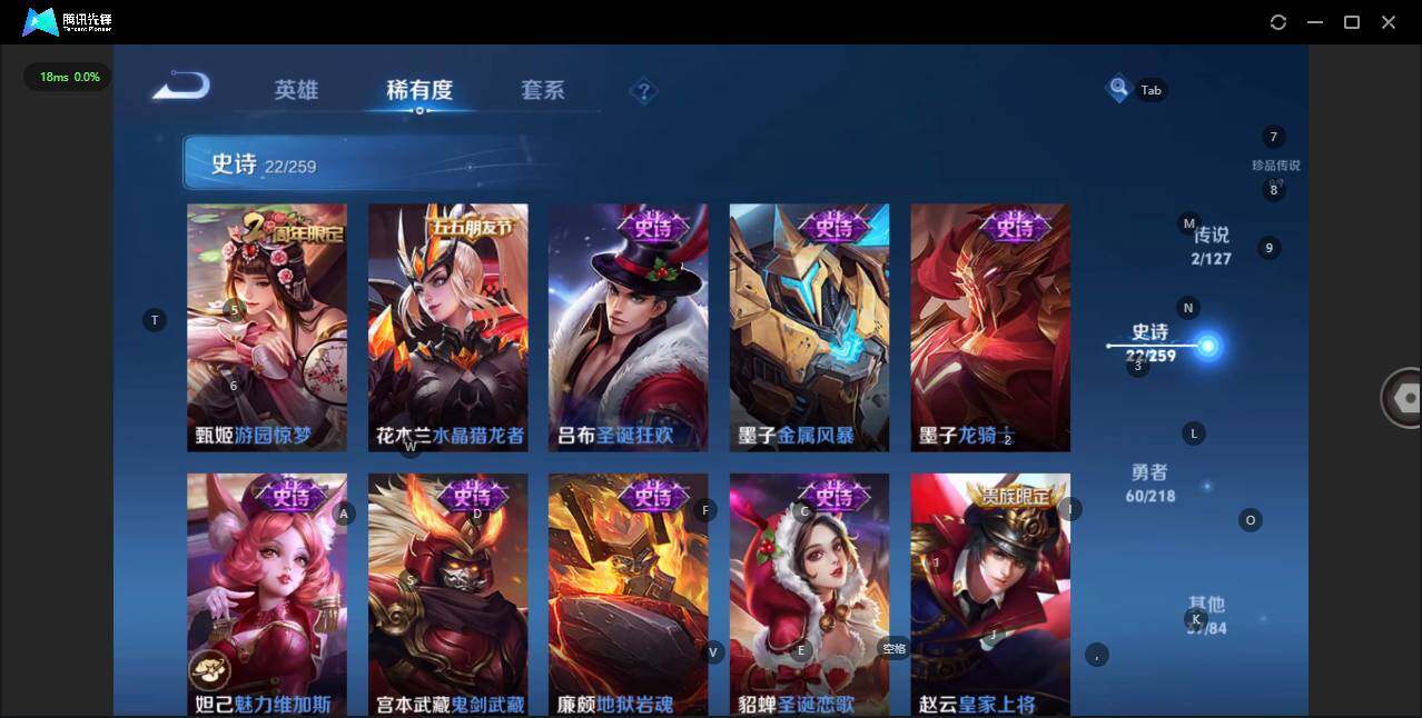 - PX_2096170-53 安卓QQ/至尊星耀/226皮肤/122英雄/1典藏/0珍品无双/1无双/0珍品传说/12传说/51史诗/8稀有英雄 【1 典藏皮肤】活力突击 程咬金, 【1 无双皮肤】群星魔术团 韩信, 【12 传说皮肤】启明星使 虞姬,云霓雀翎 虞姬,逐花归海 澜,曦玄引 吕布,乘龙·问璇玑 孙尚香,时之恋人 刘备,乘龙·淬吴钩 孙策,音你心动 小乔,战鼓燎原 典韦,乘龙·铭钟鼎 赵