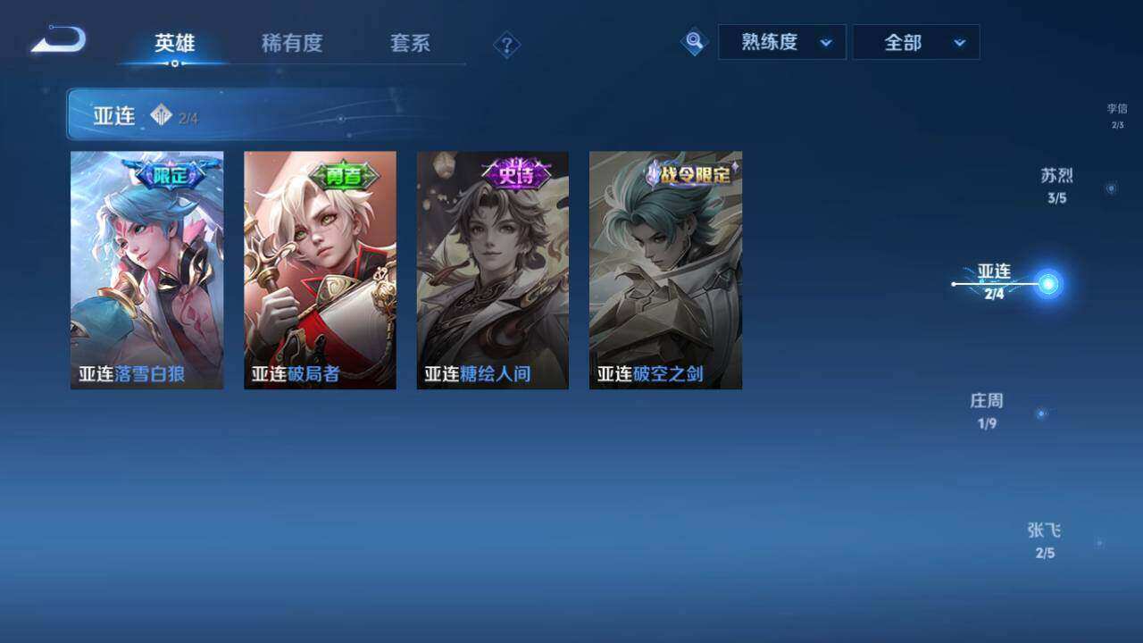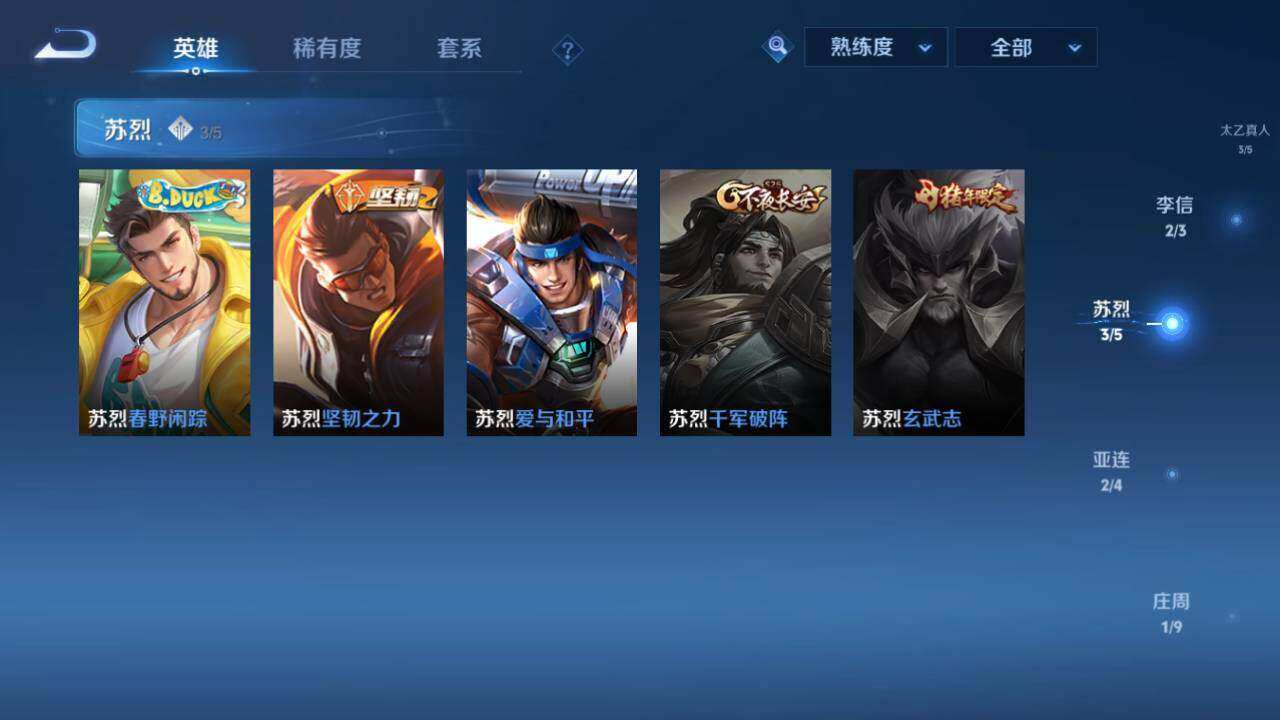 明世隐疑决卦,老夫子醍醐杖,鬼谷子原初探秘者,狄仁杰万华元夜,程咬金演武夺筹,钟馗驱傩正仪,典韦蓝屏警告,兰陵王金庭之子,李元芳云中旅人,桑启海盐诗旅,裴擒虎擒涛扼浪,鲁班大师探海日志,张良古海寻踪,项羽苍威无极,镜青焰无极