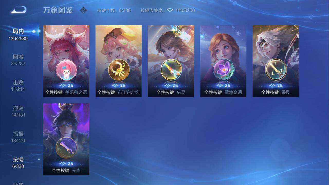 伽罗箭羽风息,李元芳逐浪之夏,阿轲节奏热浪,露娜紫霞仙子,王昭君偶像歌手,雅典娜冰冠公主,橘右京修罗,刘禅绅士熊喵,程咬金功夫厨神,兰陵王暗隐猎兽者,宫本武藏鬼剑武藏,花木兰水晶猎龙者,铠曙光守护者,墨子金属风暴,吕布圣诞狂欢,貂蝉圣诞恋歌,百里守约特工魅影,嫦娥拒霜思,雅典娜黎明之约,李白千年之狐,夏洛特永昼,刘禅电玩·爆裂旋风,周瑜雪夜绮愿,高渐离燃音魔法