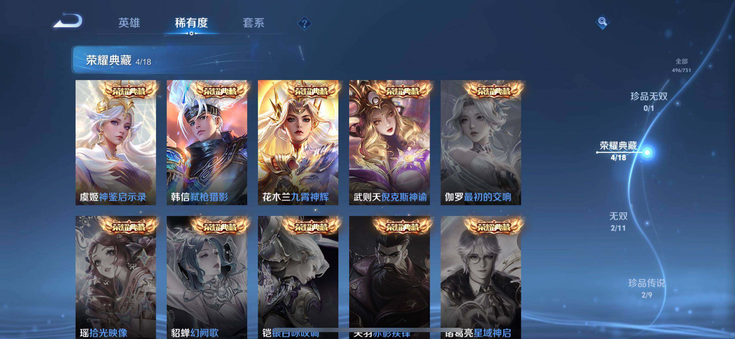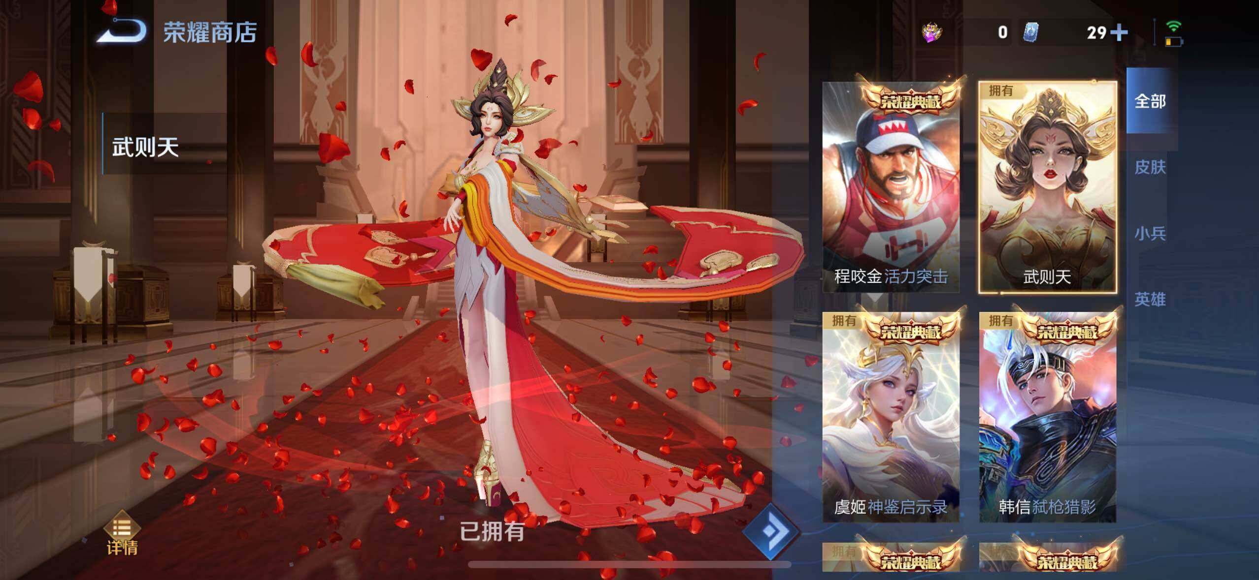 【荣耀典藏】:武则天英雄,武则天倪克斯神谕,花木兰九霄神辉,韩信弑枪猎影,虞姬神鉴启示录