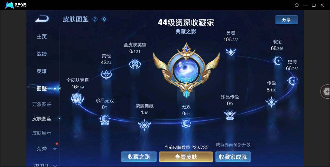- PX_2071605-安卓QQ 124英雄 461皮肤 贵族等级10 已兑换荣耀水晶数14 赤影疾锋 无限飓风号 杀手不太冷 全息碎影 天鹅之梦 鸣剑·曳影 活力突击 大秦宣太后 九霄神辉 星域神启 幻阙歌 银白咏叹调 星空梦想 青丘·九尾 神器·明辉仪 真我赫兹 兔狲·蓬尾 绯月行 灼幽烈阳 追逃游戏 太华 炽翼辉光 祈雪灵祝 云诺千山 记忆之芯 时之恋人 黄金射手座 怒海麟威 音你心动 浮生